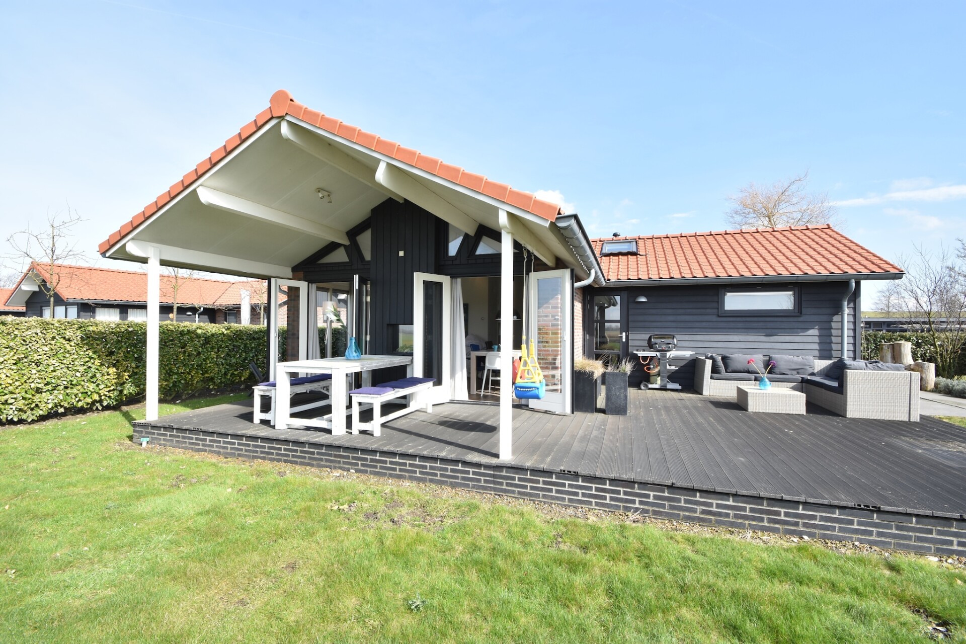 De sfeervolle vakantiewoning is een vrijstaand chalet gelegen op een kleinschalig park nabij de Oosterschelde en je beschikt over 2 slaapkamers. De woning is ideaal voor een gezinsvakantie. Het vakantiehuis is geheel gelijkvloers en heeft een groot terras rondom het huis waar je elk moment van de zon kunt genieten. Vanuit het huis heb je uitzicht op de weilanden.
