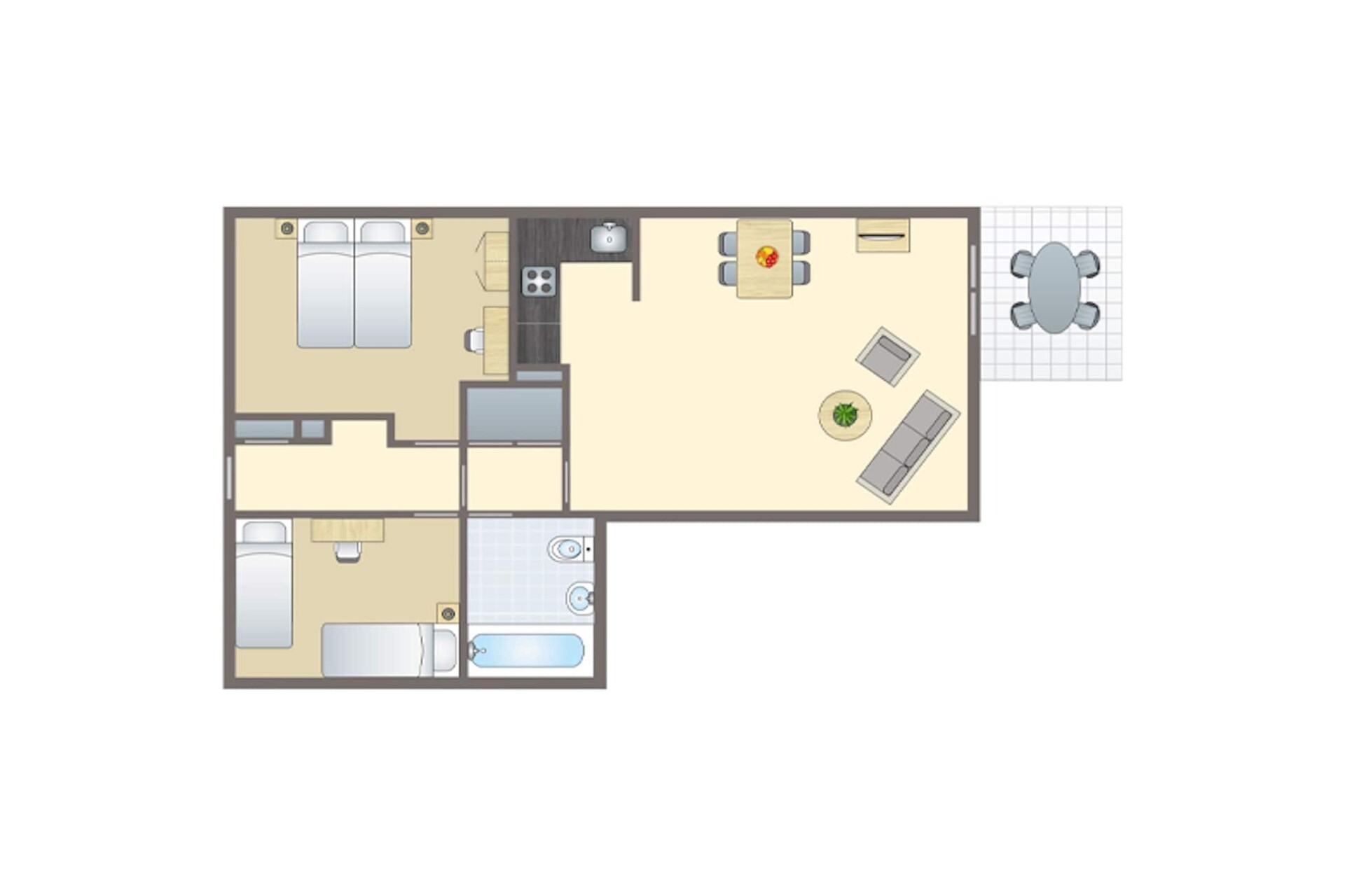 Buiten is er een terras met tuinmeubilair. Er is parkeergelegenheid voor één auto bij het appartement. Er zijn ook centrale parkeerplaatsen op het vakantiepark.