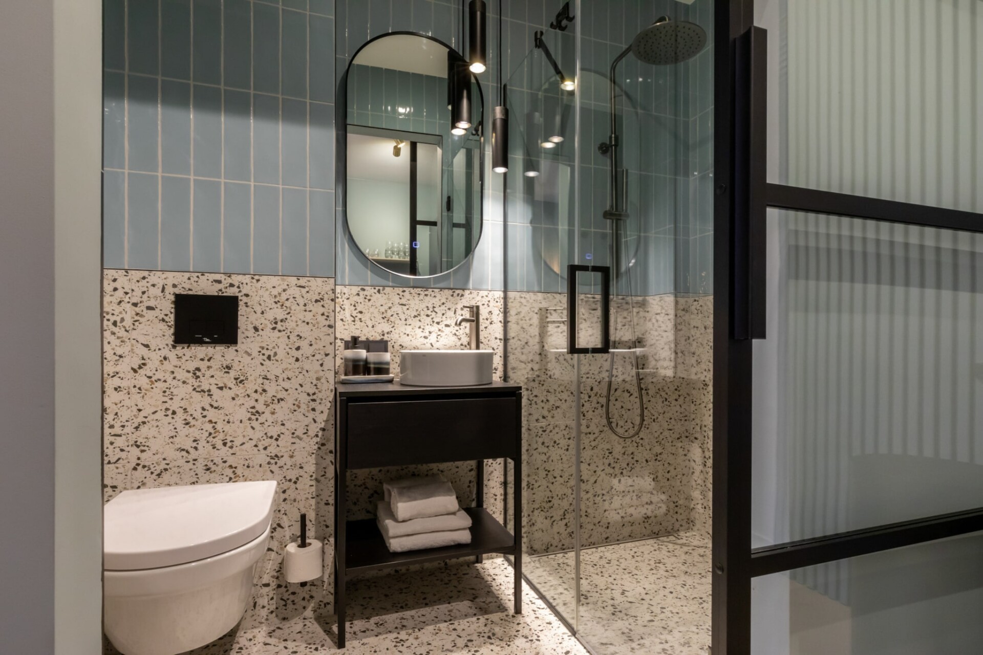 Grenzend aan de woonkamer is een handige kitchenette, uitgerust met alle benodigdheden voor het bereiden van lichte maaltijden tijdens uw verblijf. Of u nu 's ochtends een kopje koffie zet of een eenvoudig diner bereidt, u vindt alles wat u nodig heeft binnen handbereik. De ingerichte badkamer biedt een verfrissend toevluchtsoord en beschikt over een douche, wastafel en toilet, waardoor de gasten met alle gemakken van thuis.Bovendien beschikt de studio over moderne voorzieningen, zoals airconditioning, waardoor een comfortabel verblijf wordt gegarandeerd, ongeacht het weer buiten.