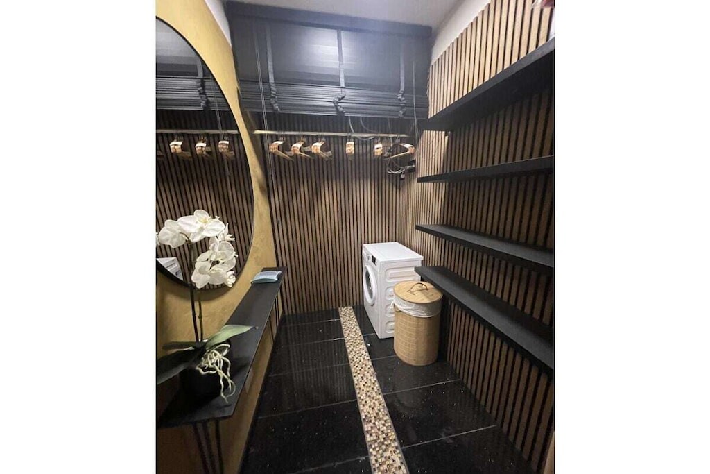 Keuken: Gloednieuwe ingerichte keuken met keramische kookplaat, magnetron, vaatwasser, koelkast, vriezer, kookgerei, servies, bestek, koffiezetapparaat en espressomachine, broodrooster, blender en strijkijzer;