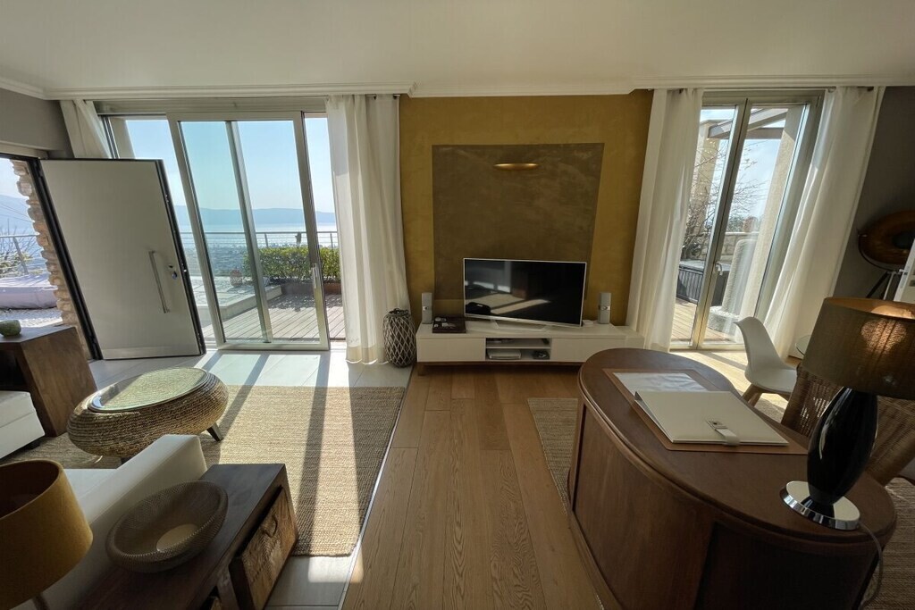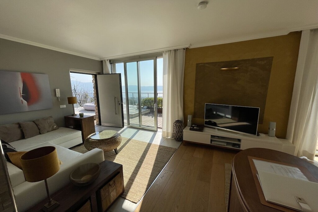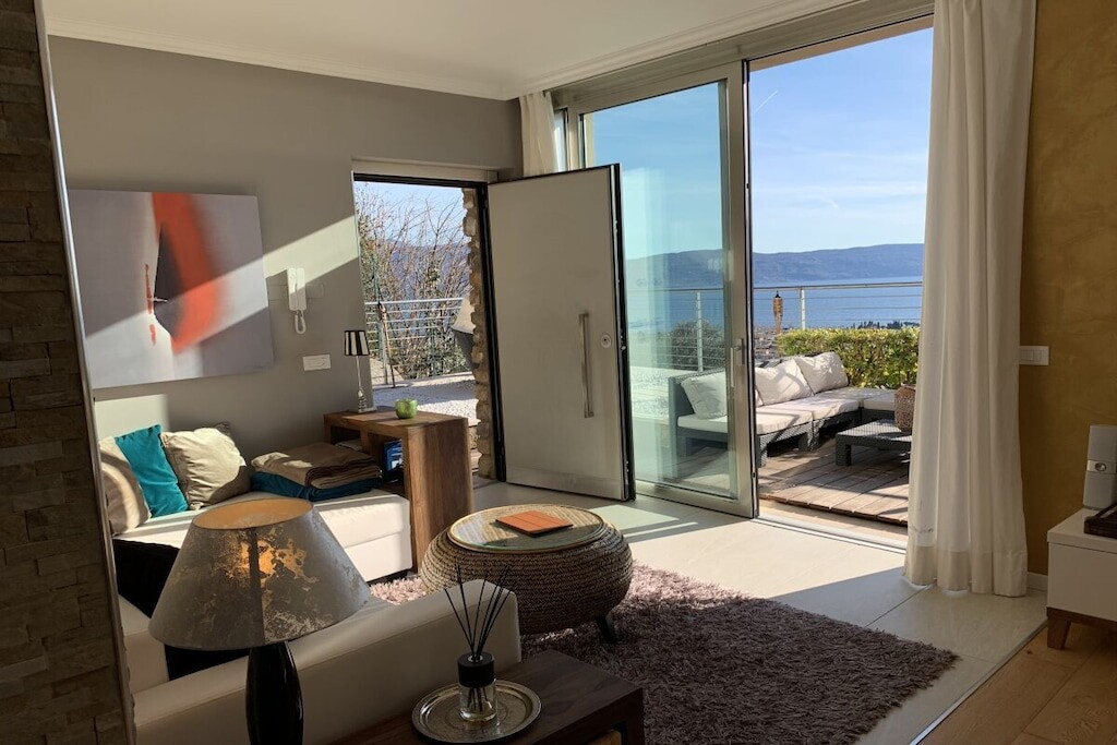 Regelmatig gerenoveerd en gedeeltelijk opnieuw ingericht vakantieappartement met een 30 meter lang zwembad en een fantastisch uitzicht op het meer en de bergen.