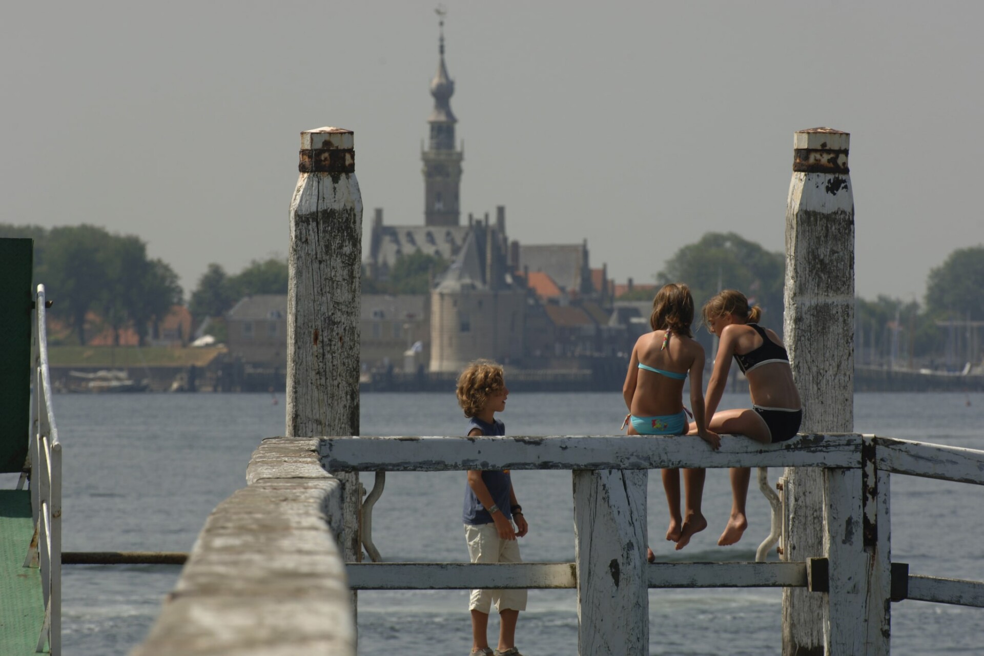 Het terras grenst aan de oevers van het Veerse Meer. Van hieruit loop je naar het water. Je hebt het zwembad, surf- en zeilgebied letterlijk voor de deur.