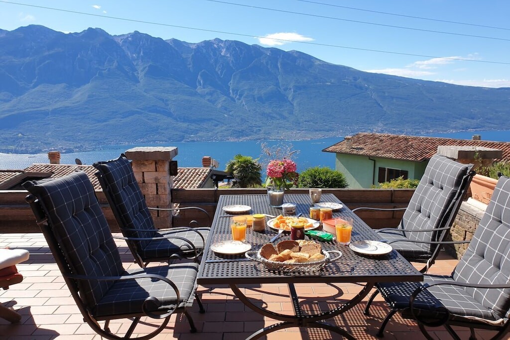 Casa Sira is een fantastisch vakantiehuis boven het Gardameer op 560 m. Gratis gebruik van het zwembad vanaf 1,5. tot 30 september!