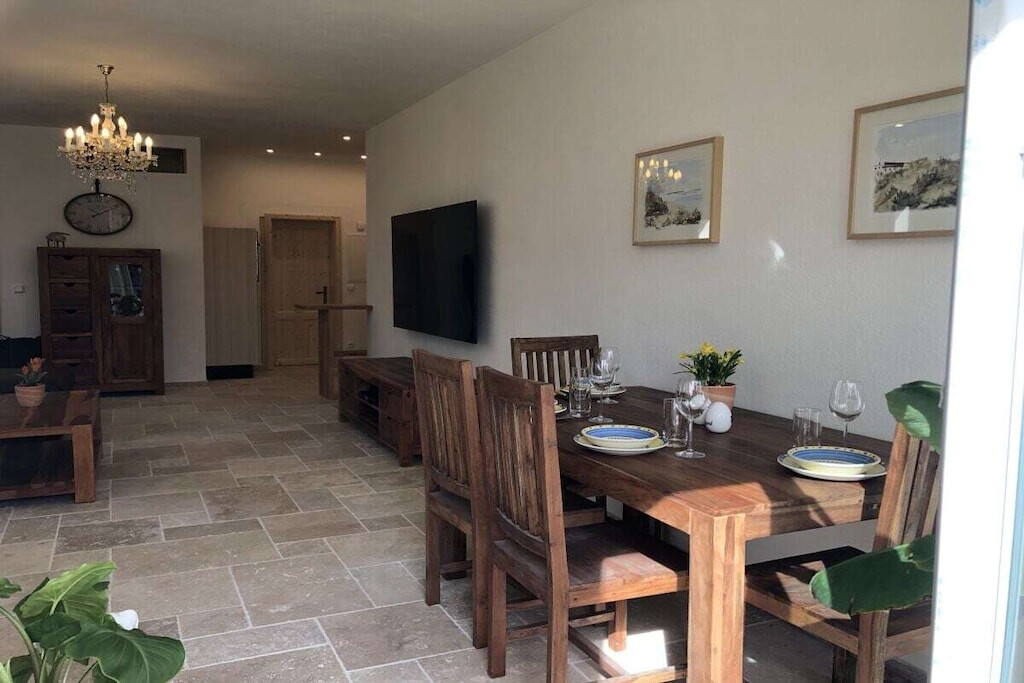 Het vakantieappartement heeft een oppervlakte van 55 m² en is in 2021 na uitgebreide renovatiewerkzaamheden herbouwd in het bijgebouw van de voormalige dorpskruidenier.