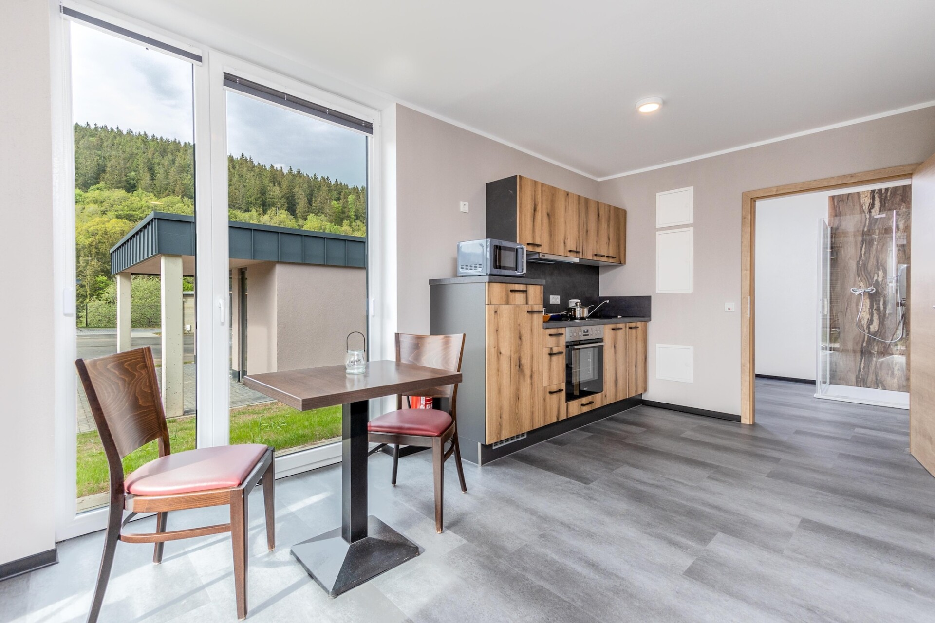 Deze gezellige bungalow voor twee personen ligt op slechts 50 meter van de rustige oevers van de Kronenburger See in Hallschlag en biedt een oase van rust aan het meer. De begane grond beschikt over een lichte woonkamer met zit- en eethoek, een open keuken met moderne apparatuur en een eigen terras voor ontspannen momenten in de buitenlucht. Een slaapkamer met twee eenpersoonsbedden en een badkamer met douche maken de comfortabele indeling compleet.