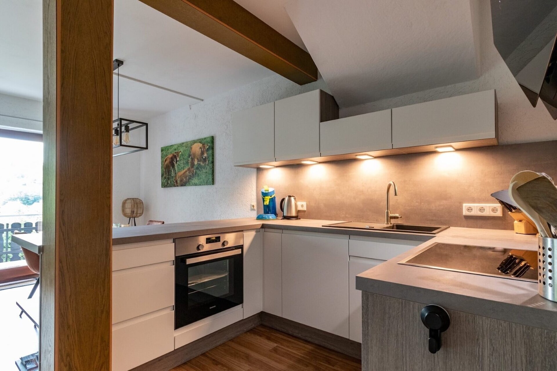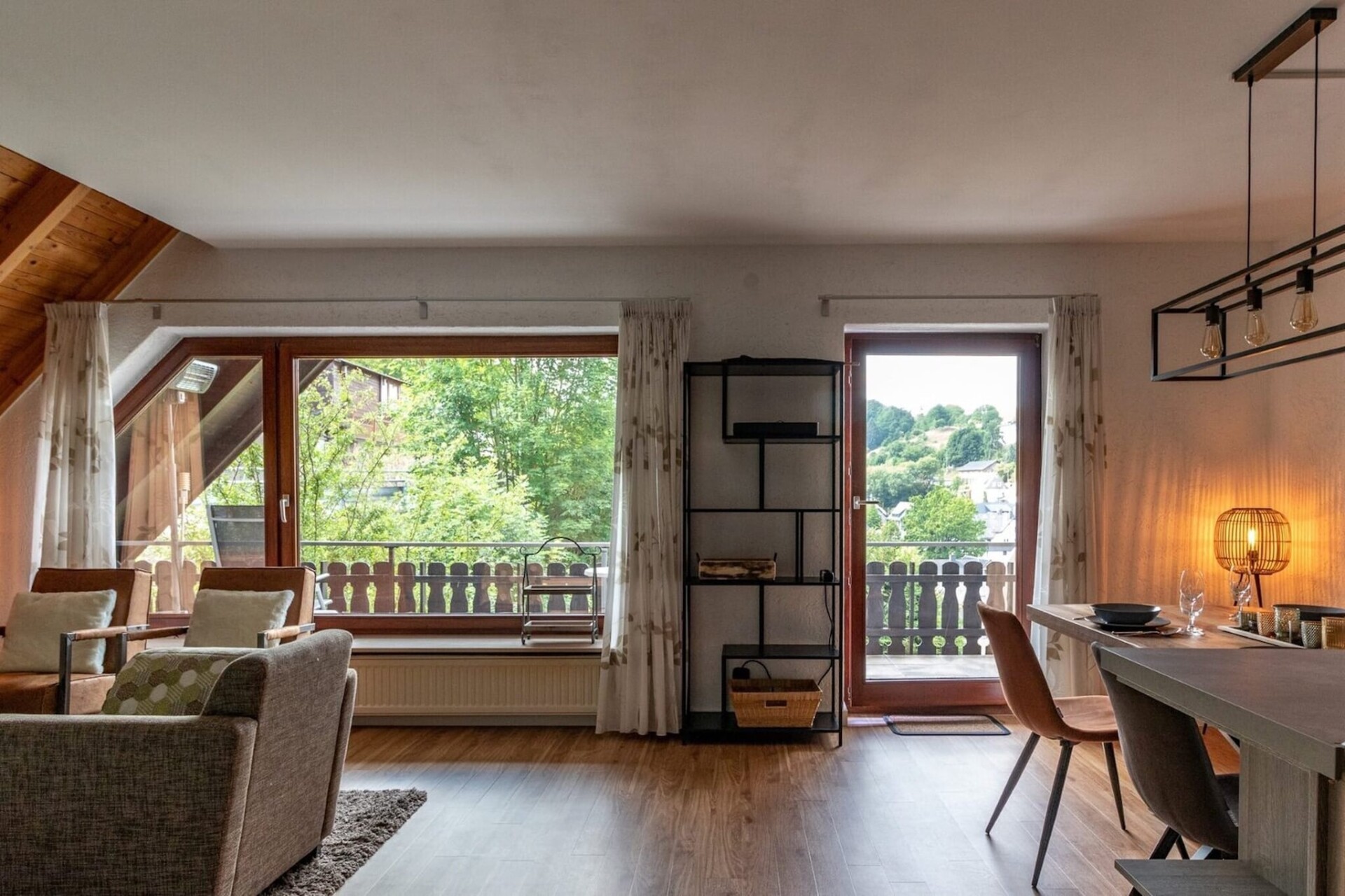 Een compleet nieuw ingericht appartement van ca. 90 m2 ideaal voor een vakantie of een weekend weg in een rustige omgeving. Appartement Bergzicht heeft een prachtig uitzicht over het dorpje. Er zijn mooie wandelroutes direct vanuit het appartement. Het heeft een gezellige woonkamer met open keuken. Het appartement ligt in een kleinschalig complex op de 3e verdieping. De woonkamer heeft een prettige zithoek. De nieuw ingebouwde keuken is volledig uitgerust en voorzien van alle gemakken. Er is een grote eettafel waar men lekker lang kan tafelen. Het woon en eetgedeelte is in 1 grote ruimte. Eventueel kan er een 5e persoon op de slaapbank slapen. Voor ontspanning en goede nachtrust zijn er 2 slaapkamers alle met tweepersoonsbedden. Er zijn 2 badkamers. Beide badkamers hebben een douche, wc en wastafel. Het balkon met meubels biedt een fantastisch uitzicht, waar het genieten is van de natuur. Op de onderste verdieping is een speelruimte en een bar waar men gezellig met elkaar kan zijn. Op deze verdieping bevindt zich ook een sauna (gemeenschappelijk gebruik) waar men heerlijk kan relaxen. Een wasmachine en droger zijn beschikbaar. Er is een ruimte voor fietsen of skispullen op te bergen. Bij het appartement staat een laadpaal voor elektrische auto's. Wilt u hiervan gebruik maken dan dient u dit aan te geven bij uw boeking. De kosten worden hiervoor apart afgerekend.