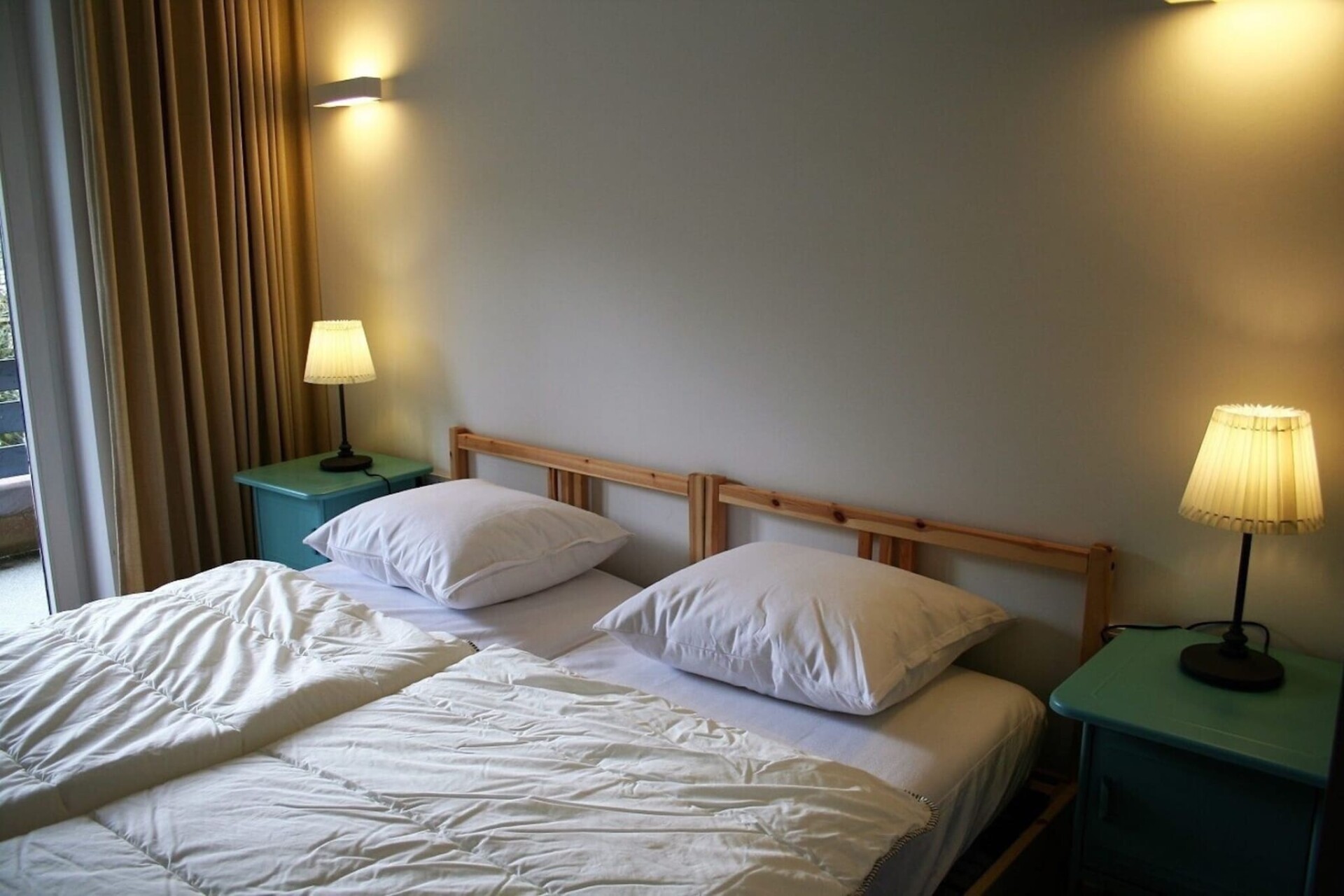 Via de ruime hal met garderobe komt u dit appartement binnen en heeft u toegang tot de lichte woonkamer met een comfortabele zit- en eethoek en het balkon. Aangrenzend aan de woonkamer bevindt zich de luxe keuken welke van alle moderne gemakken is voorzien en waar zich tevens de wasmachine en wasdroger bevinden. Het appartement is geschikt voor 6 personen en heeft 3 slaapkamers. De masterbedroom beschikt naast een tweepersoonsbed, over voldoende kastruimte en toegang tot het balkon, ook over een eigen badkamer met wastafel, toilet en inloopdouche. De tweede slaapkamer beschikt tevens over een tweepersoonsbed en de derde slaapkamer over 2 éénpersoons bedden. Beide slaapkamers bieden u voldoende kastruimte en delen samen de tweede badkamer welke vanuit de hal toegankelijk is. Het appartement ligt op de 2de verdieping.