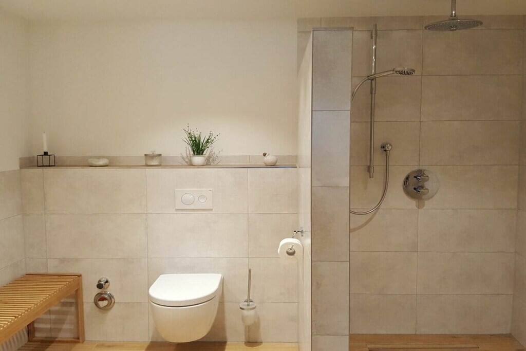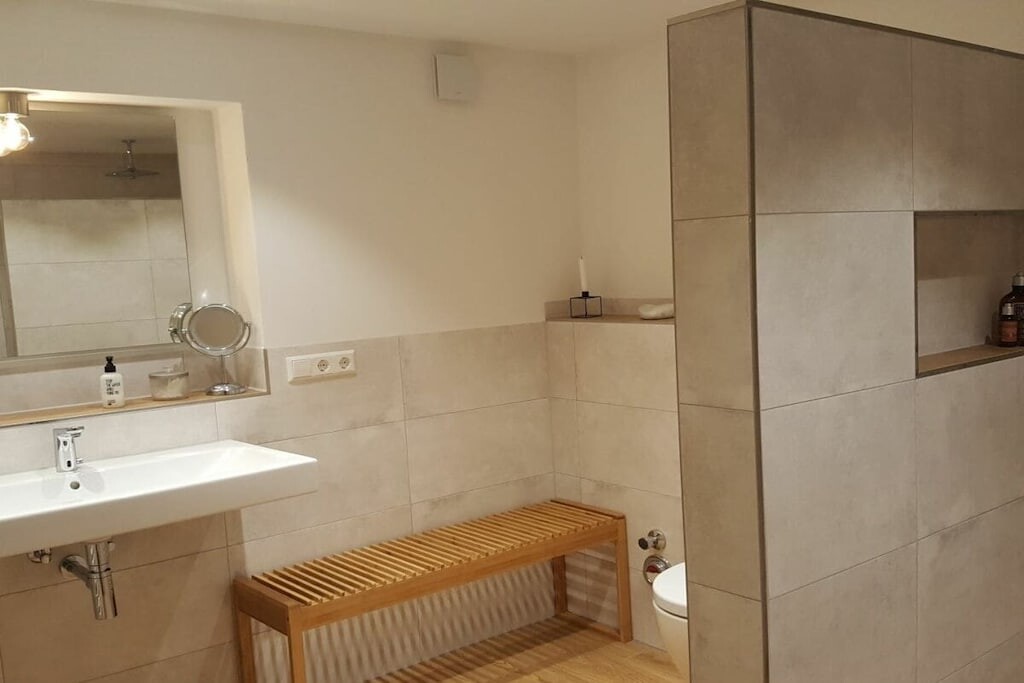 De hoogwaardige badkamer is in mei 2020 opgeleverd en is met haar nieuwe inloopdouche een ware wellness-oase.
