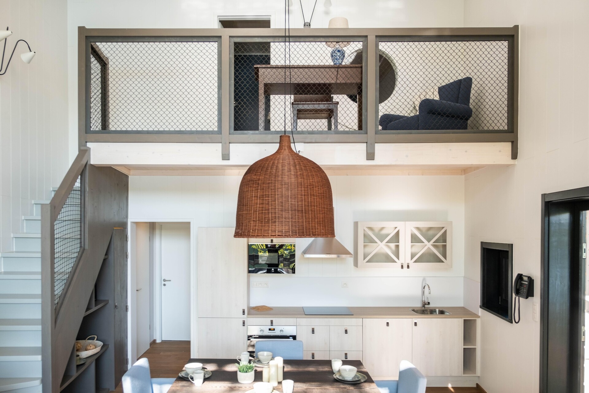 Op de begane grond vindt u een stijlvolle slaapkamer met een tweepersoonsbed en een badkamer met bad en toilet. Op de begane grond vindt u een knusse slaapkamer met twee eenpersoonsbedden, een eigen badkamer met een Italiaanse douche en een apart toilet. De volledig uitgeruste keuken is voorzien van een koelkast, vaatwasser en koffie- en theefaciliteiten. Extra voorzieningen zijn onder andere een houtkachel, een beveiligde parkeerplaats met oplaadpunt voor elektrische auto's, een fietsenstalling en een multifunctionele zaal voor vergaderingen of seminars.