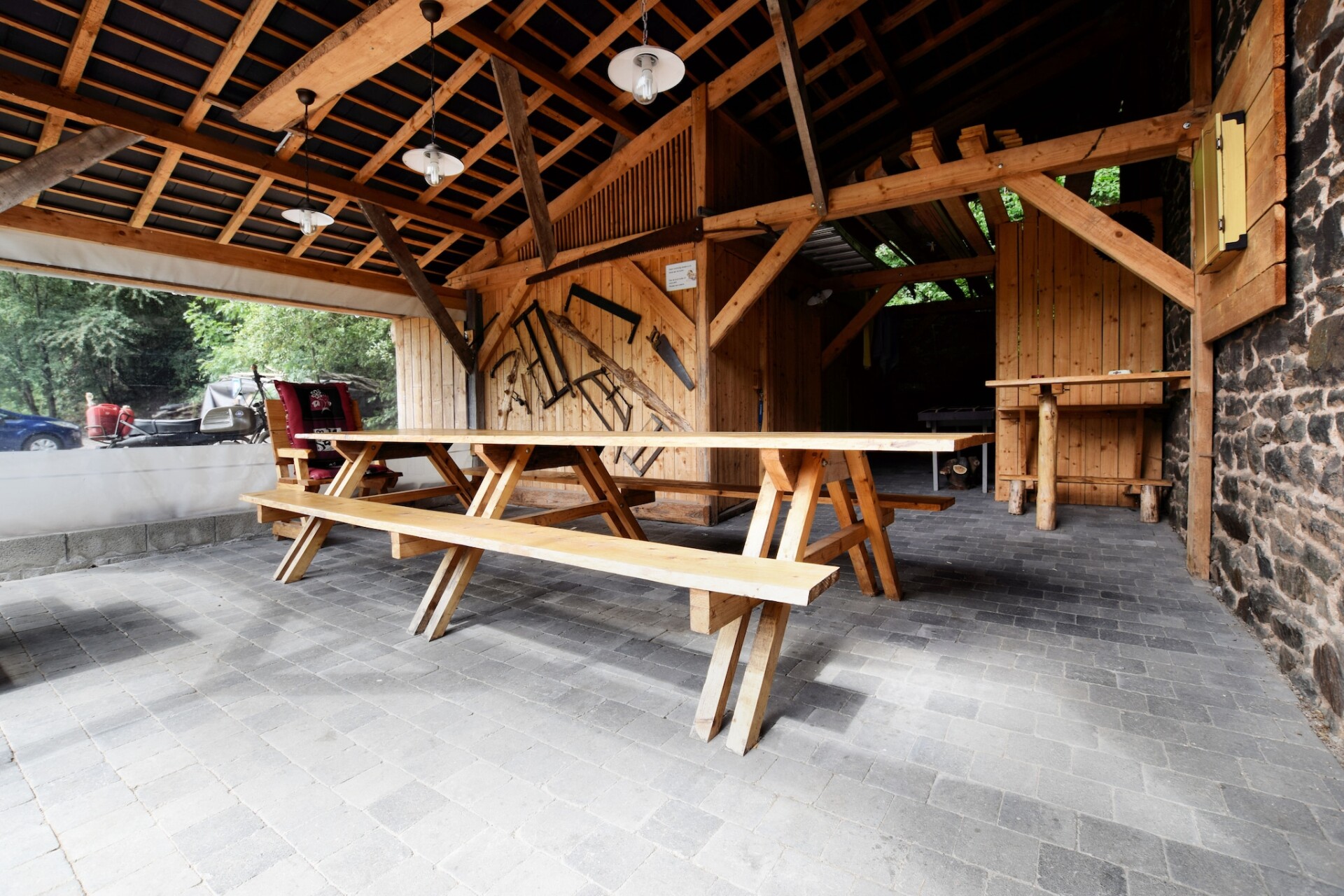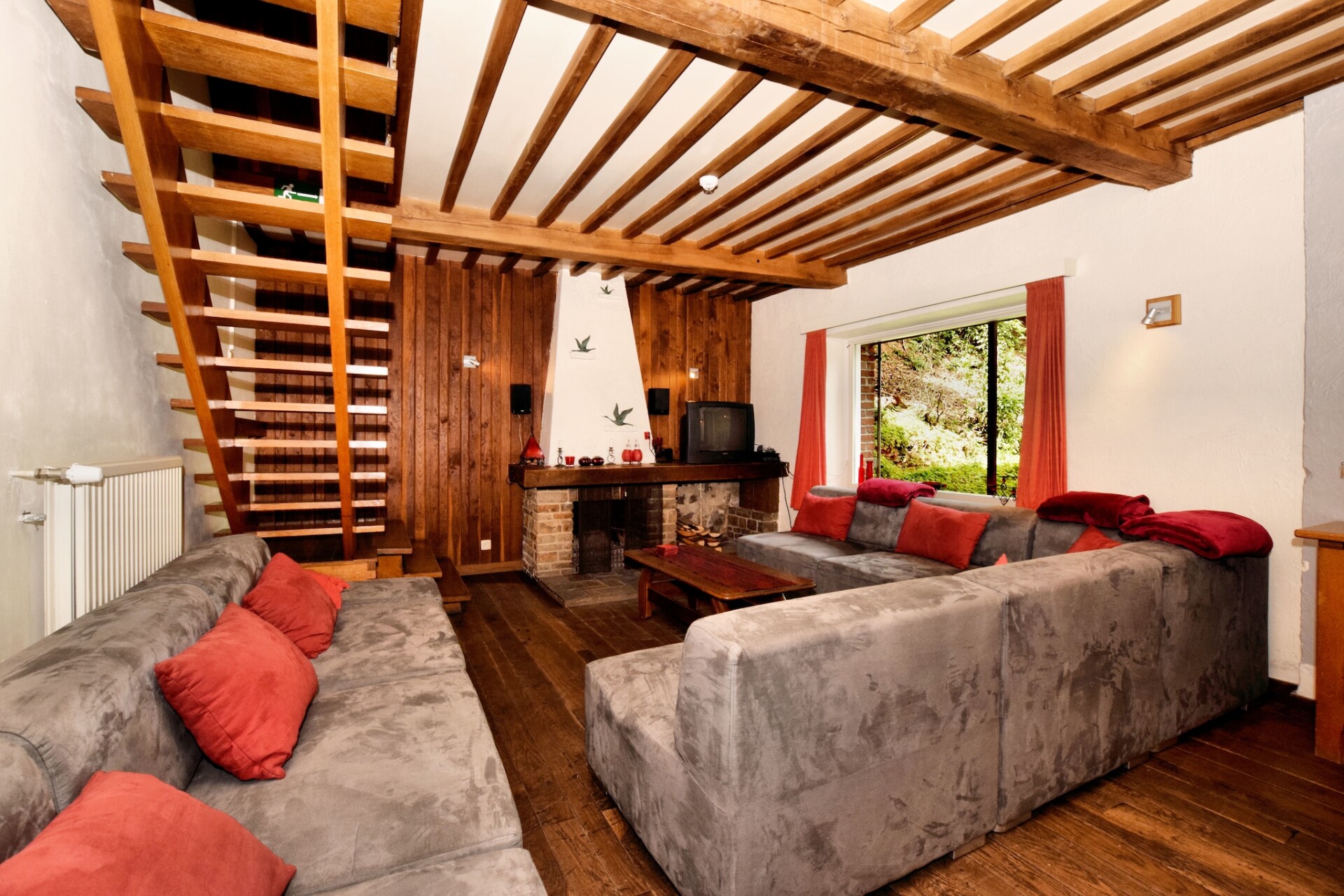 Welkom bij De Zagerij, een charmant en ruim vakantiehuis in Rendeux, België, ooit een historische houtzagerij aangedreven door een waterrad. Gelegen aan een beekje, bestaat deze unieke accommodatie uit twee aparte huizen, elk met een eigen woonkamer, wat comfort en privacy biedt voor gezinnen of groepen die samen reizen. Ideaal voor natuurliefhebbers; schilderachtige wandelingen beginnen direct voor de deur. Geniet van dagtochten naar pittoreske stadjes zoals Durbuy, La Roche-en-Ardenne, Hotton, Dinant en Rochefort. Of u nu de Ardennen verkent of binnen ontspant, De Zagerij is uw perfecte uitvalsbasis. Binnen is het huis warm en uitnodigend met verwarming en een gezellige open haard. Geniet van voorzieningen zoals bordspellen, tafelvoetbal en een bar in het linker huis. Roken is binnenshuis niet toegestaan, maar er zijn asbakken beschikbaar bij de uitgangen buiten. Afval wordt gesorteerd in twee containers, zwart voor algemeen afval en groen voor compost, en elke dinsdag opgehaald. Parkeren is mogelijk op het terrein. Respecteer de rustige omgeving: gebruik de radio niet na 20:00 uur. Om veiligheidsredenen mogen elektrische voertuigen niet via het elektriciteitsnet van uw huis worden opgeladen. Dit kan extra kosten met zich meebrengen.
