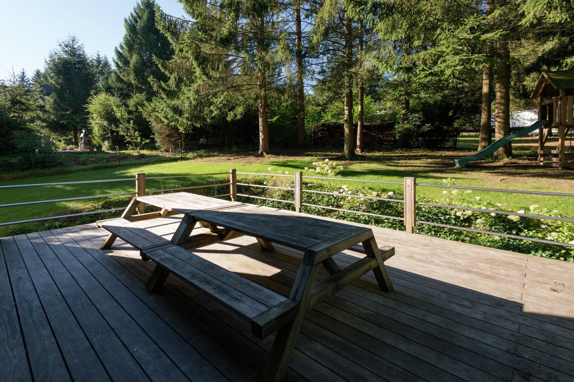 La Dolina, diep verscholen in de bossen bij Durbuy, is een duurzaam gebouwd chalet met 3 slaapkamers en biedt plaats aan maximaal 8 gasten. De woning is met liefde en respect voor de natuur door de eigenaren met de hand gebouwd en beschikt over een warmtepomp, ventilatiesysteem en vloerverwarming - modern comfort met minimale impact op het milieu. Of u nu komt voor een gezellige familiedag, boswandelingen of gewoon om te ontspannen, dit huis belooft rust, stilte en verbondenheid. Binnen is de moderne keuken volledig uitgerust voor gezamenlijke maaltijden en culinaire avonturen. Na het diner kunt u zich nestelen bij de houtkachel of naar buiten stappen op het ruime terras om de zonsondergang te bewonderen. Het huis beschikt over twee badkamers, kinderbedjes voor kleine dromers en een ontspanningsruimte. Buiten vindt u in de omheinde tuin een klimrek, perfect voor kinderen en nieuwsgierige eekhoorns. Verken de Hoge Ardennen te voet of per fiets, kajak over de Ourthe of tokkel door de Avonturenvallei van Durbuy. Bezoek de watervallen van Aywaille, de dolmen van Wéris of beleef wintersport op slechts 25 km afstand. Met het gezellige centrum van Durbuy op loopafstand is La Dolina het hele jaar door een toevluchtsoord voor natuurliefhebbers en milieubewuste reizigers.