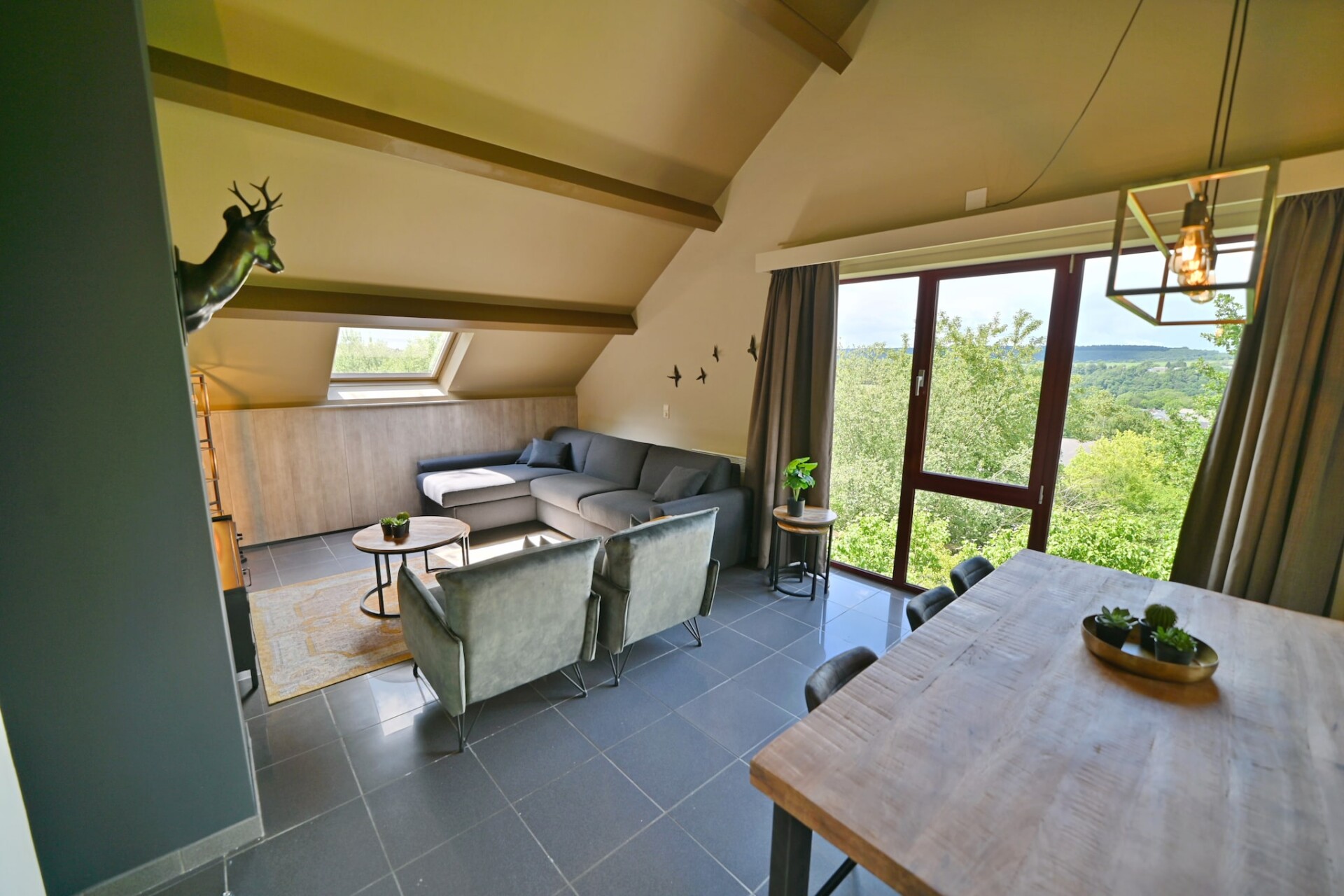 Dit charmante appartement op de begane grond, gelegen in de rustige bossen van Résidence Durbuy, biedt een perfecte mix van modern comfort en rustieke charme. Het warme interieur, de knusse slaapbank en de stijlvolle inrichting zorgen voor een ontspannen sfeer tijdens uw verblijf. De goed uitgeruste open keuken is voorzien van een combimagnetron, vaatwasser en een Nespresso-koffiezetapparaat – ideaal voor een uitgebreid ontbijt of diner met vrienden. Met twee slaapkamers en een strakke badkamer met een bad-douchecombinatie is de ruimte perfect geschikt voor gezinnen of kleine groepen van maximaal vier volwassenen en twee kinderen jonger dan 12 jaar.