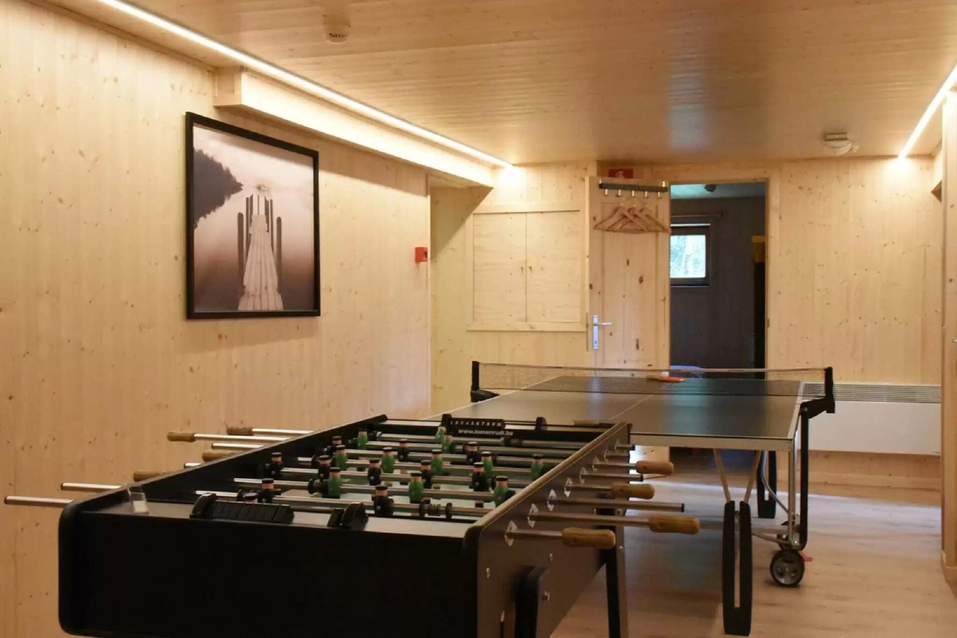 Chalet Finlandais biedt met zijn 8 slaapkamers comfortabel plaats aan maximaal 18 gasten, waardoor het perfect is voor grote gezinnen of groepen. Gelegen in een rustige, groene omgeving in de Ardennen, biedt het chalet al het comfort dat u nodig heeft, inclusief een ontspannende sauna. Breng uw dagen door met het verkennen van de omliggende bossen met vrienden of familie en ontspan vervolgens op het terras op het zuiden met een barbecue in de open lucht. Gelegen op slechts 5 km van Durbuy, bekend als het kleinste stadje ter wereld, en op slechts 1 km van Wéris, beroemd om zijn dolmens, menhirs en rijke legendes, is de omgeving een paradijs voor zowel natuur- als geschiedenisliefhebbers. Geniet van prachtige wandelingen, verken de charmante straatjes van Durbuy vol gezellige terrasjes en gastronomische restaurants, of beleef de spanning in Adventure Valley Park en het nieuwe indoorcentrum in de buurt, waar u kunt kajakken, mountainbiken en klimmen. Barvaux, het dorp van het chalet, biedt winkels en een golfbaan voor liefhebbers. De grote keuken is volledig uitgerust om heerlijke maaltijden te bereiden die u kunt delen in de ruime eetkamer. Elke comfortabele slaapkamer belooft een rustgevende nachtrust. Voor uw vermaak beschikt het chalet over een tafeltennistafel en tafelvoetbalspel. Parkeren is mogelijk op het terrein.