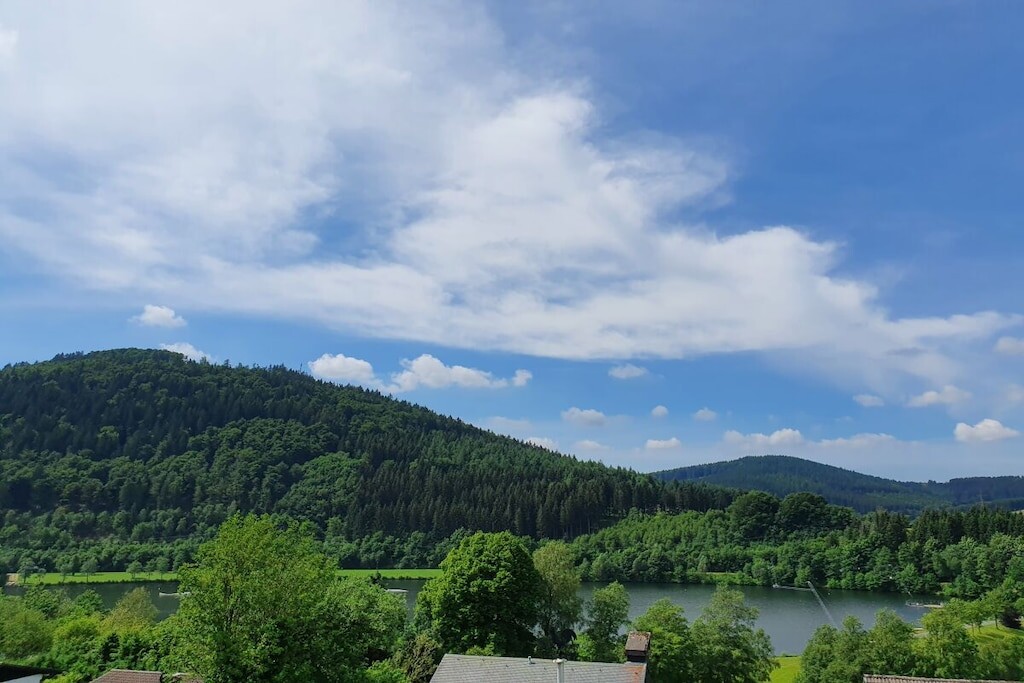 Vakantiewoning met uitzicht op het meer Niedersfeld Winterberg Sauerland Hillebachsee. Lichtovergoten, gerenoveerde zolder op het Rothaargebirge met panoramisch uitzicht op de Hochheide