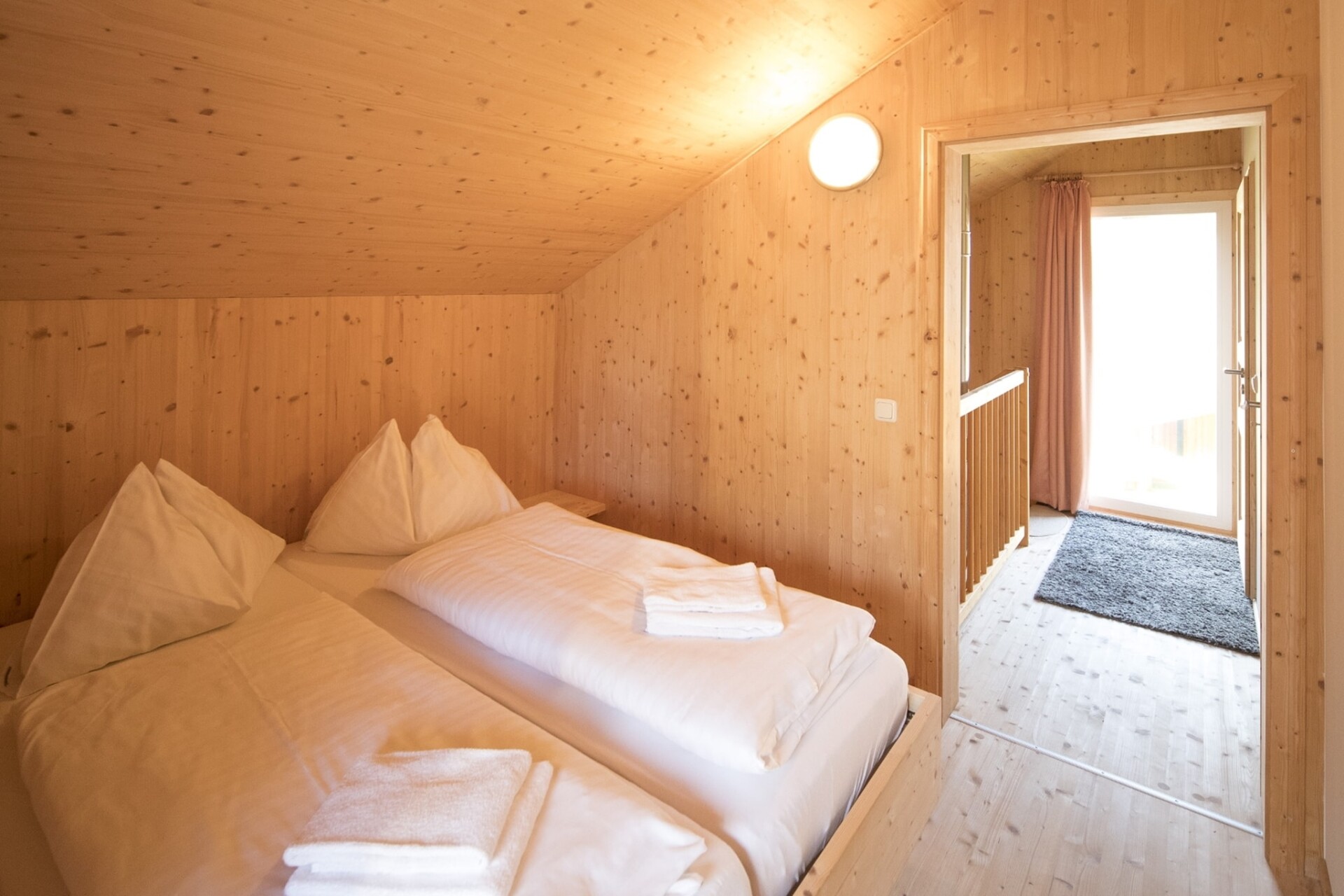 Het chalet beschikt over twee prachtig ingerichte slaapkamers met tweepersoonsbed en een derde slaapkamer met stapelbedden, waardoor het ideaal is voor gezinnen of groepen. De badkamer is voorzien van een ligbad en een toilet. Voor uw gemak is er ook een haardroger aanwezig.