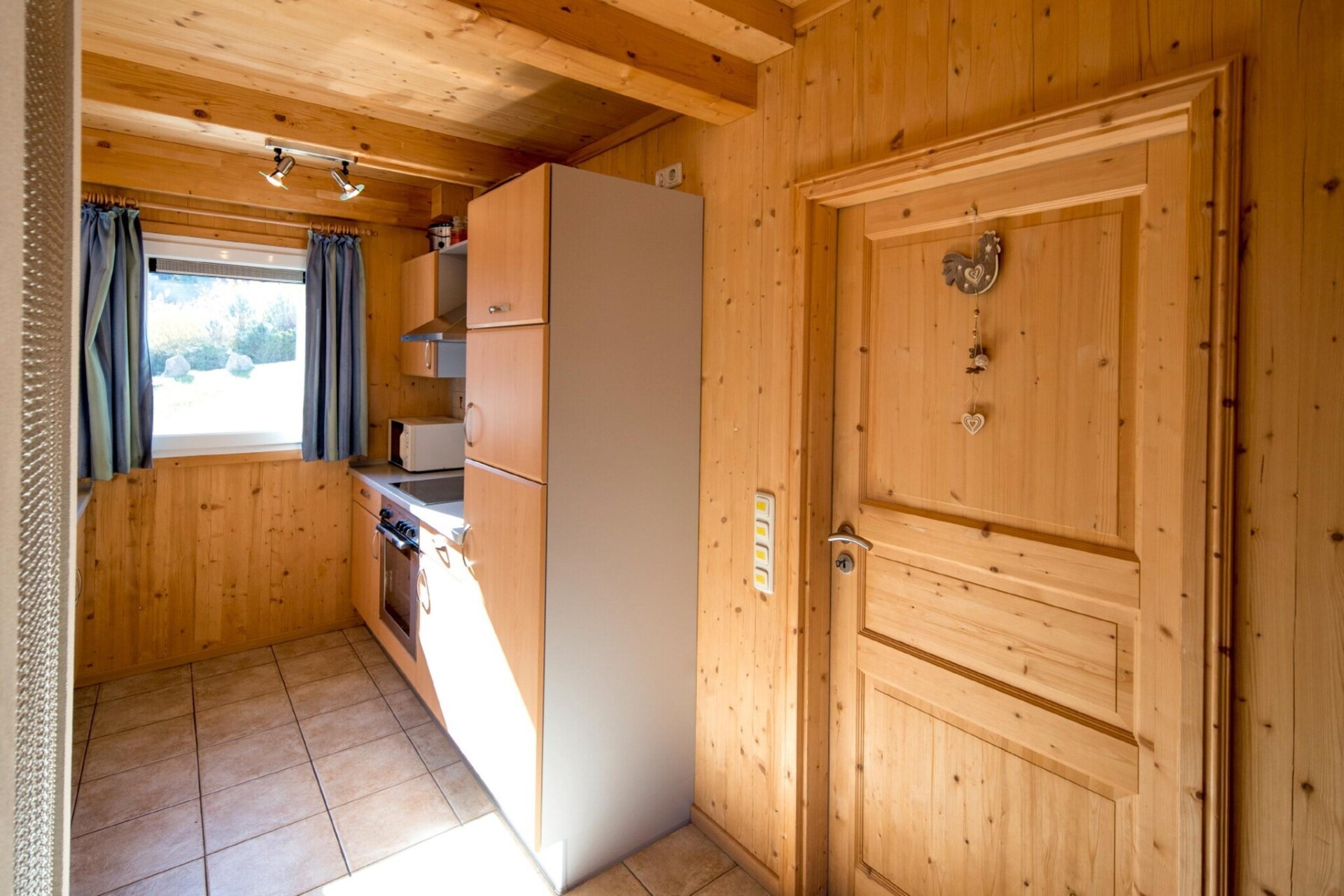 Het hart van Chalet Paal II is de open keuken, volledig uitgerust om aan uw culinaire wensen te voldoen. Hier vindt u bestek, kookgerei, een keramische kookplaat, een oven, een vaatwasser en een koelkast met vriesvak. Een broodrooster, waterkoker en koffiezetapparaat zorgen ervoor dat elke maaltijd een genot is. Bij aankomst ontvangt u een kleine starterskit met vaatwastabletten, een proefmonster afwasmiddel, een spons, vuilniszakken, schoonmaakmiddelen en een theedoek om direct aan de slag te kunnen. Ontspan en geniet van de frisse lucht op het gemeubileerde terras, waar u na een drukke dag heerlijk kunt ontspannen. Het chalet is voorzien van gratis wifi en satelliet-tv, zodat u tijdens uw verblijf verbonden en vermaakt kunt blijven.
