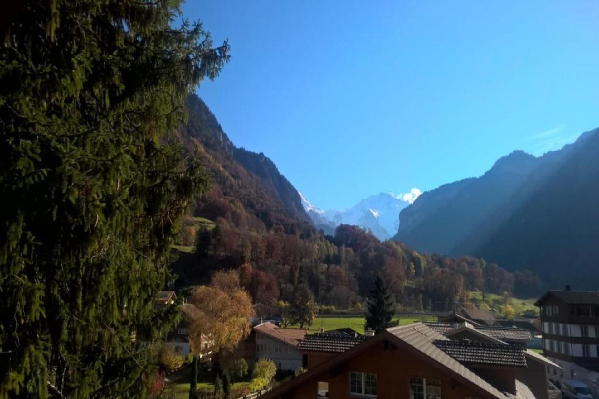 Geniet van een rustige vakantie in de Alpen in dit charmante vakantiehuis met twee slaapkamers in Wilderswil, gelegen op de tweede verdieping van een traditioneel Zwitsers chalet. Het huis biedt plaats aan maximaal drie gasten en biedt een prachtig uitzicht op de Mönch en Jungfrau. Het is ideaal voor stellen, kleine gezinnen of vrienden. De zorgvuldig ingerichte woning heeft een gezellige en moderne touch en biedt alle comfort van thuis in een serene omgeving – verscholen aan het einde van een doodlopende straat voor volledige rust.
