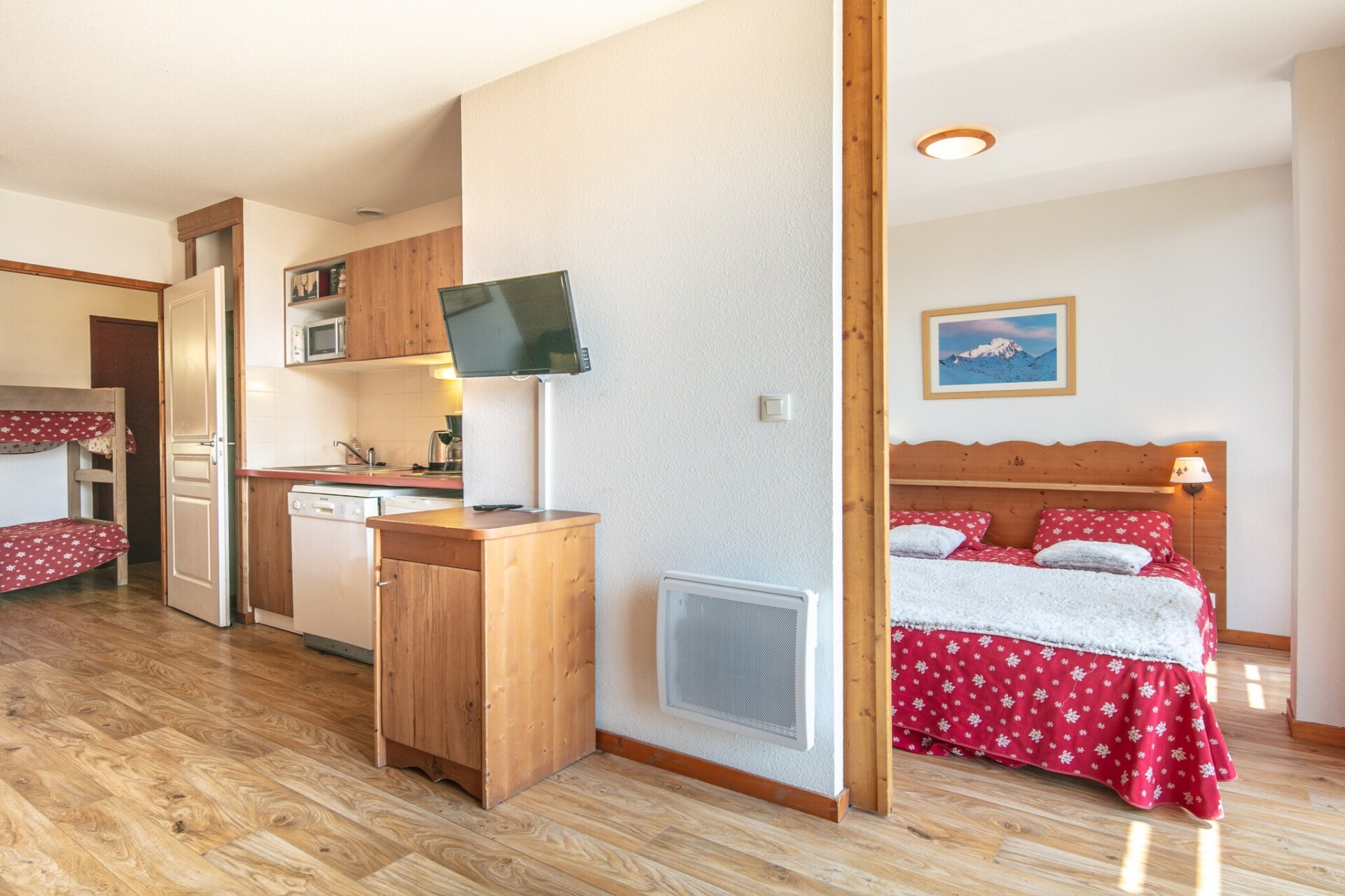 Het appartement beschikt over een terras van 11 m² met tuinmeubilair, ideaal om te ontspannen na een dag op de piste terwijl u geniet van de frisse berglucht. Binnen vindt u handige voorzieningen zoals een tv en een föhn. Er is ook een onoverdekte parkeerplaats op het terrein voor extra gemak.