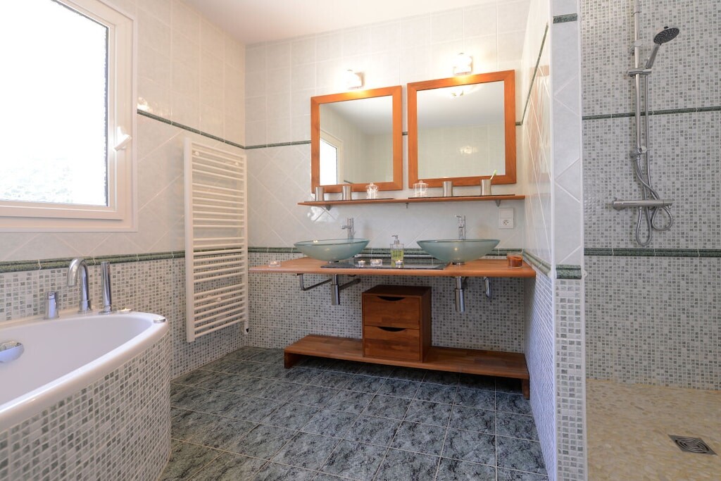 Voor huisdieren biedt een "Dog House"-gedeelte zowel zonnige als schaduwrijke plekken voor veilige, begeleide verblijven. Het hoofdhuis beschikt over een ruime woon- en eetkamer met antieke meubels, een leren bank bij de open haard en een goed uitgeruste Franse landelijke keuken met moderne voorzieningen. De villa heeft vier slaapkamers, waaronder een master suite met en-suite badkamer en inloopkast. Buiten kunt u genieten van het privézwembad, tuinhuis, BBQ, terras en privéparkeergelegenheid. Deze villa biedt luxe, ontspanning en privacy voor een onvergetelijk verblijf.