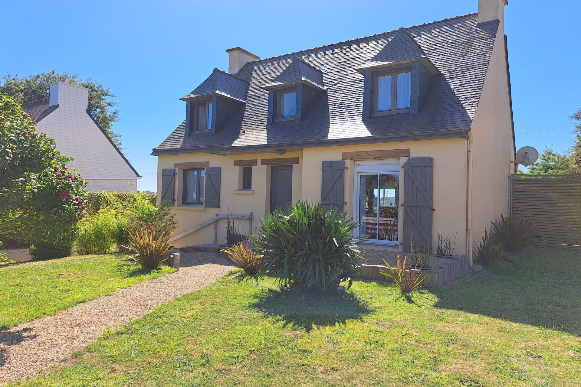 Goed uitgerust vakantiehuis met comfortabel terras op een rustige locatie aan de Ria des Quillimadec. Sommigen kunnen heerlijk ontspannen op de comfortabele lounge tuinmeubelen terwijl anderen de avondbarbecue klaarmaken. Binnen biedt uw vakantiehuis een ruime indeling met een open keuken naar de woonkamer en een tweede woongedeelte waar u zich in alle rust kunt terugtrekken. De vele kleine baaien en het lange zandstrand zijn te voet of met de fiets in een paar minuten te bereiken. De plaats is populair en staat bekend als badplaats. In de lange baai zijn er veel kleine badstranden en rotspartijen en bij eb trekt de zee zich kilometers terug. De getijdenkreken warmen zich op rond de rotsen als kleine pierenbadjes, waar kinderen kunnen spelen en spetteren. Een paradijs ook voor schelpenverzamelaars en strandvissers!