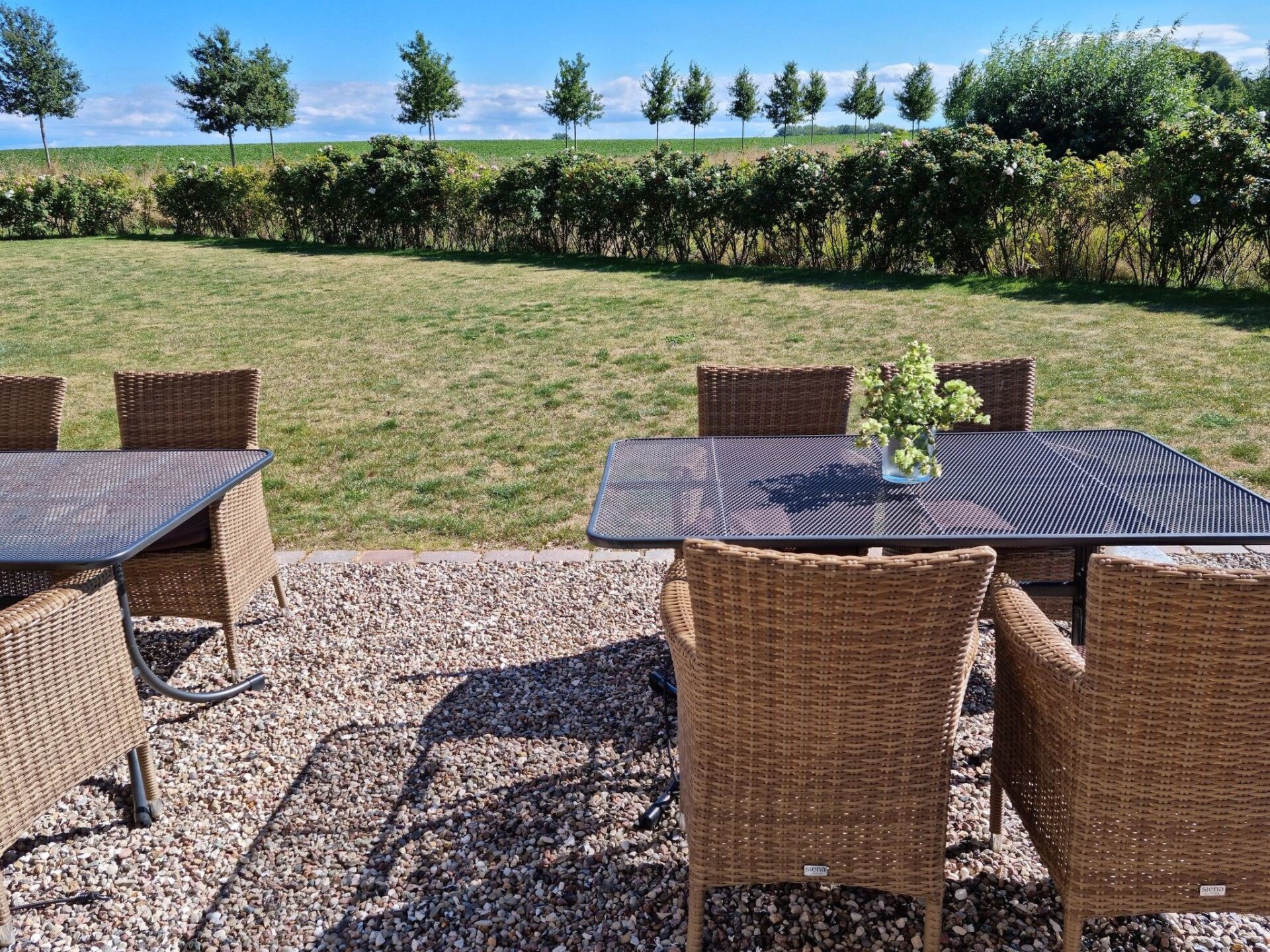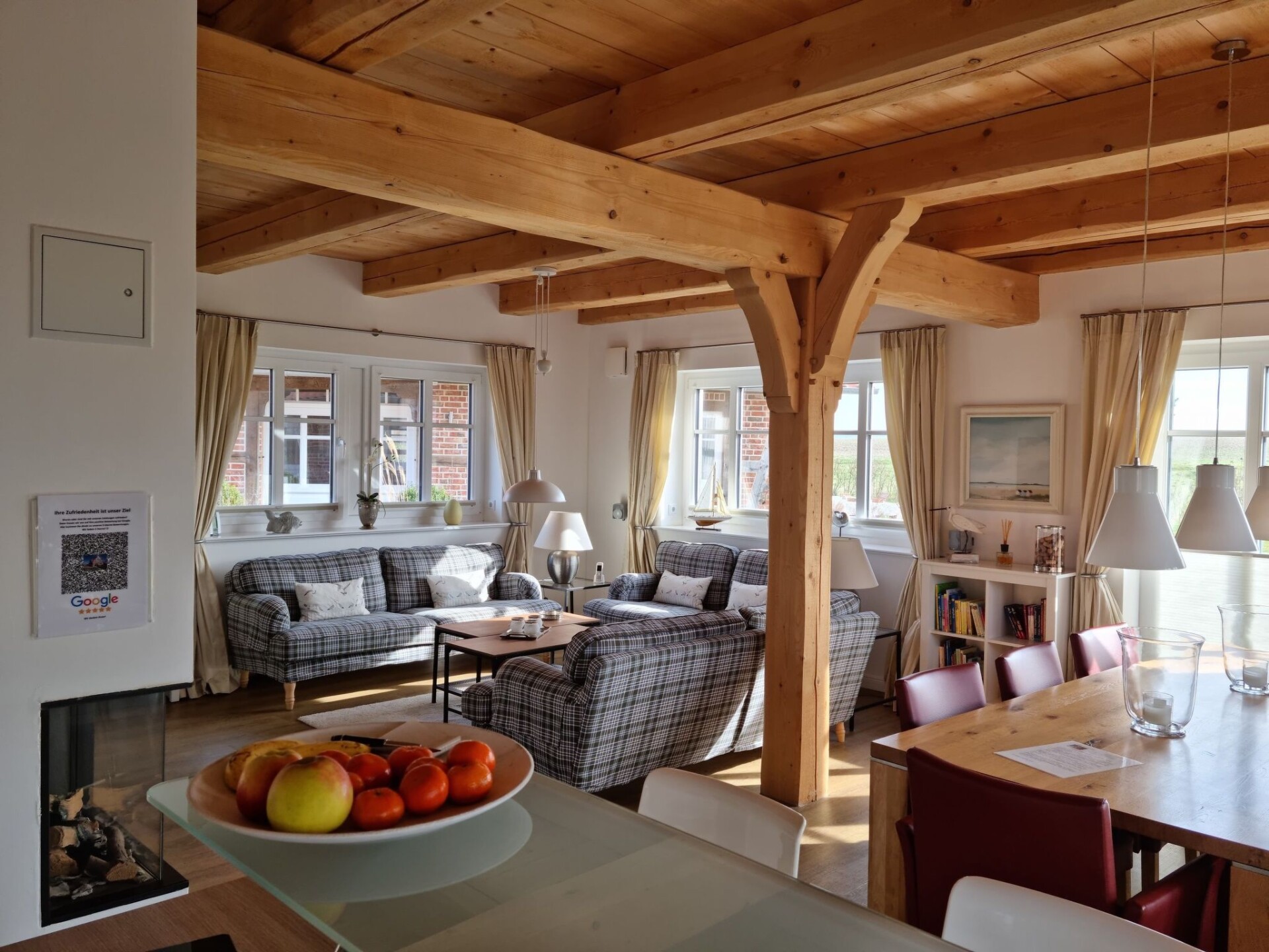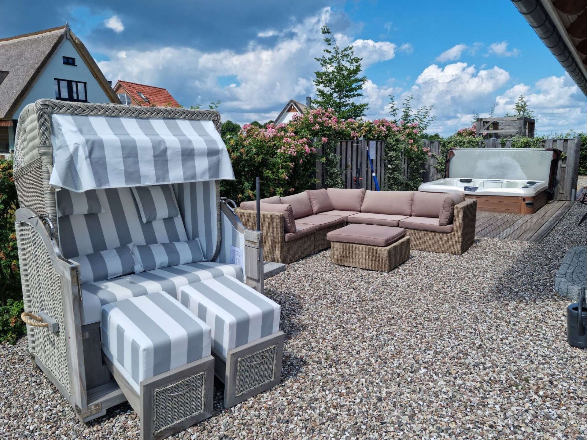 Wellness-Landhaus***** Luxury, sauna, 2x whirlpools, steam bath, fireplace, box spring, en suite bathrooms, WLAN The Landhaus 4 Jahreszeiten is located in Groß Schwansee on a 1,000m² dream property in the middle of colourful flower meadows and golden yellow rapeseed and grain fields. The Baltic Sea is within sight and the beach is just a few minutes' walk away. Groß Schwansee is located on the Baltic Sea between Travemünde (10km) and Boltenhagen (15km), in the middle of the unspoilt Mecklenburg countryside with a wonderful natural sandy beach, meadows and fields.The Landhaus 4 Jahreszeiten is perfectly equipped for your relaxation! The quietly located, modern half-timbered house was built in 2017, furnished to a high standard and decorated with great attention to detail and charm. The focus is on making your holiday as comfortable and pleasant as possible. You should want for nothing during this wonderful time. The German Tourism Association has again classified our country house 2023 for 8 people with very good results and awarded it 5 stars!!! Groups of up to 16 people can be accommodated here and in our second identical country house on the same property. In the inspection report, the DTV certifies: "A very exclusive house with great attention to detail, super furnishings, own wellness area, high-quality furnishings - simply great. Beautiful outdoor area with outdoor pool, lounge furniture and playground."With a total of 150 m² spread over two floors, you can accommodate up to 8 adults and 2 small children. There are a total of 8 beds in four bedrooms, one on the ground floor and three on the upper floor. Three bedrooms have directly adjoining en-suite bathrooms. Two of the bedrooms, one on the upper floor and one on the ground floor, are furnished with luxurious box-spring beds (180 cm x 200 cm). In the third bedroom, you sleep on a comfortable double bed (180 cm x 200 cm) in real leather with adjustable headboards. The fourth, small bedroom has two comfortable single beds (90 cm x 200 cm). Children and teenagers will feel particularly at home here. It is possible to set up children's beds in bedrooms 1-3. All bedrooms are tastefully decorated and equipped with spacious wardrobes, bedside tables with reading lamps, safes, external blinds and SMART TVs. There are 2 bedrooms for up to 4 people, 3 bedrooms for up to 6 people and 4 bedrooms for up to 8 people. Single occupancy is possible with a surcharge. If 9 or 10 people >3 years of age need to be accommodated, we can set up to 2 guest beds in the living room or wellness area.The 3 modern en-suite bathrooms spoil you with level and step-free shower areas with rain showers, elegant glass walls and illuminated storage compartments. The V&B washbasins with vanity units and additional shelves offer plenty of space for your bathroom and cosmetic accessories. There is a bidet in two of the bathrooms. Exclusive illuminated bathroom mirrors, vanity mirrors and Bluetooth radios are further highlights here.The 50 m² living and dining area offers enough space for the whole family or larger groups. You can spend relaxing hours at the large oak dining table with comfortable armchairs and space for 8-10 people as well as in the cosy living area, furnished with high-quality sofas with 8 seats. The underfloor heating and the gas fireplace, which can be booked as an option, create the perfect cosy atmosphere. A high-quality Samsung/Marantz/Elac home cinema system with 55" SMART TV, Blu-Ray player and high-end receiver are available here. Netflix streaming is installed in the TV. You can also use a Playstation PS 4 and our range of DVDs and CDs. A games collection and a holiday library with a selection for young and old are also available. We also offer you a wine depot with exquisite international wines at moderate prices.The modern open-plan kitchen with bar is fully equipped to a very high standard. Here you will find everything you need to make your stay as pleasant as possible: a fridge-freezer, ceramic hob with extractor bonnet, dishwasher and oven. For your coffee enjoyment, you can choose between a SAECO fully automatic coffee machine with integrated milk container for 6 coffee specialities and a filter coffee machine. Electrical appliances include a toaster, egg cooker, kettle, food processor and blender. A large range of pans and pots with many kitchen utensils enable you to cook perfectly and enjoyably. A large SMART TV also provides entertainment here. Elegant V&B crockery, silver cutlery and a high-quality range of glasses ensure the perfect table setting.An absolute highlight of the house is the 25 m² indoor wellness area on the upper floor with a fantastic view over meadows and fields. Enjoy the peace and quiet in the large sauna with a glass front for six people, the climatic steam bath and an indoor whirlpool 190 cm x 120 cm for 2 people. After a soothing sauna session, you can cool off under the rain shower and with the Kneipp hose before relaxing in the two Kneipp footbaths or in the deckchairs in front of the large SMART TV. For sporting activities, you are welcome to use our fitness equipment: a cross trainer, a sit-up bench, dumbbells and a gymnastics mat. ATTENTION: the indoor wellness area must be booked separately. Unfortunately, it is not possible to book individual services. Bookings can only be made for the entire holiday period.The house has its own telephone system, with which you can make free calls to all German networks. A washing machine and tumble dryer are available free of charge in the utility room.From the living and dining area you have direct access to the beautiful garden, which offers plenty of space for relaxation and recreation with a total of three furnished terraces with pool, lounge and dining areas.Our No. 1 highlight in the garden: relax in the bubbling V&B outdoor whirlpool (2.40 cm x 2.40 cm) for a total of five people at 37.5° all year round ATTENTION: the outdoor whirlpool must be booked sep