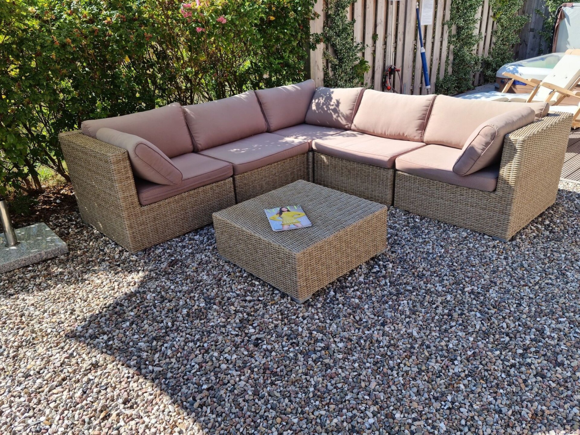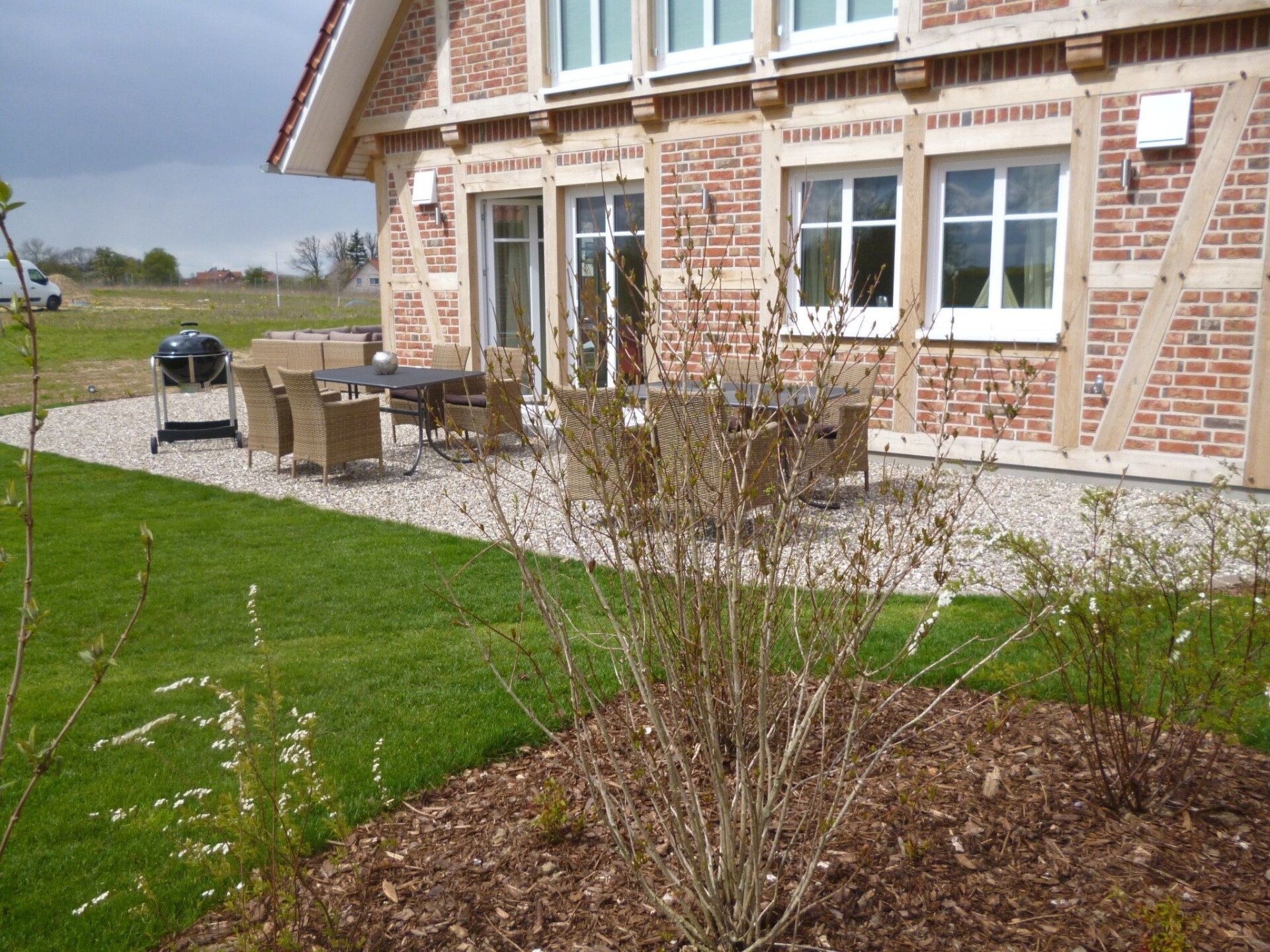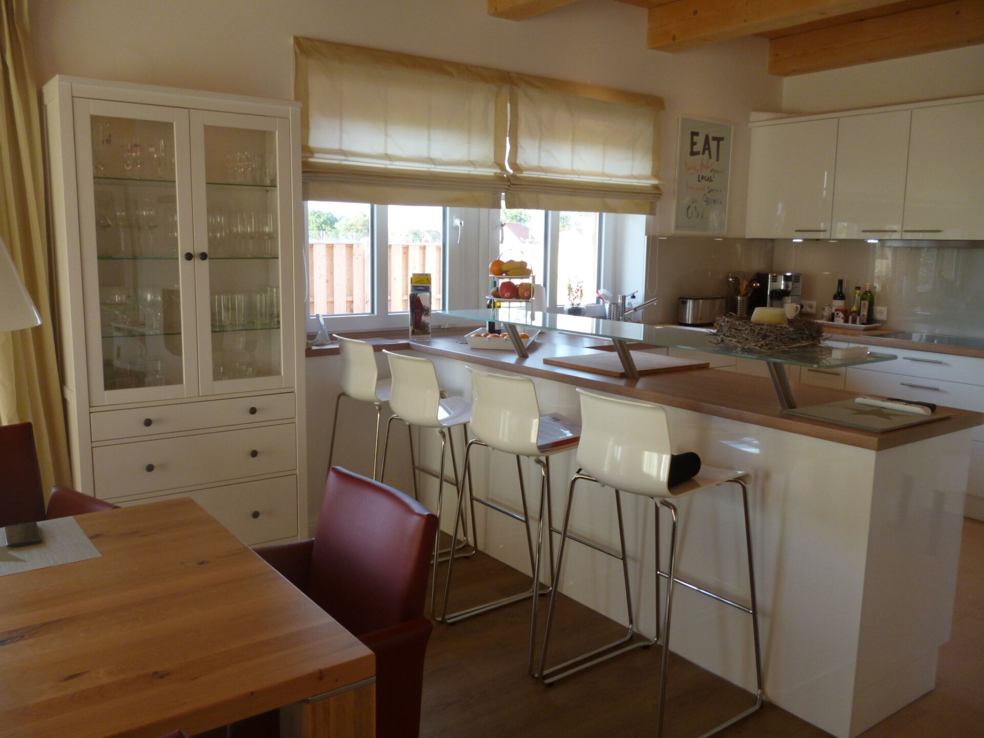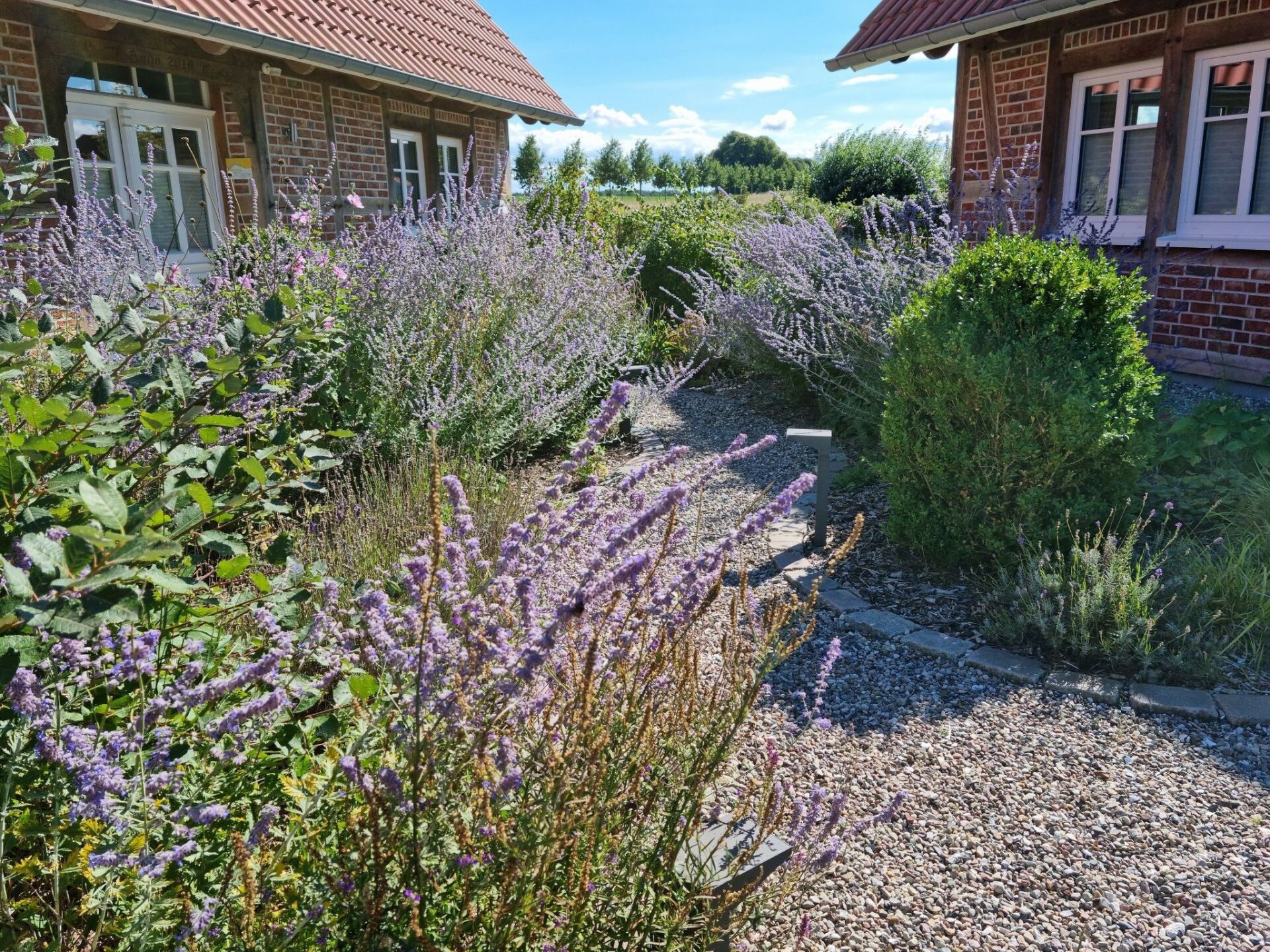 Wellness-Landhaus***** Luxury, sauna, 2x whirlpools, steam bath, fireplace, box spring, en suite bathrooms, WLAN The Landhaus 4 Jahreszeiten is located in Groß Schwansee on a 1,000m² dream property in the middle of colourful flower meadows and golden yellow rapeseed and grain fields. The Baltic Sea is within sight and the beach is just a few minutes' walk away. Groß Schwansee is located on the Baltic Sea between Travemünde (10km) and Boltenhagen (15km), in the middle of the unspoilt Mecklenburg countryside with a wonderful natural sandy beach, meadows and fields.The Landhaus 4 Jahreszeiten is perfectly equipped for your relaxation! The quietly located, modern half-timbered house was built in 2017, furnished to a high standard and decorated with great attention to detail and charm. The focus is on making your holiday as comfortable and pleasant as possible. You should want for nothing during this wonderful time. The German Tourism Association has again classified our country house 2023 for 8 people with very good results and awarded it 5 stars!!! Groups of up to 16 people can be accommodated here and in our second identical country house on the same property. In the inspection report, the DTV certifies: "A very exclusive house with great attention to detail, super furnishings, own wellness area, high-quality furnishings - simply great. Beautiful outdoor area with outdoor pool, lounge furniture and playground."With a total of 150 m² spread over two floors, you can accommodate up to 8 adults and 2 small children. There are a total of 8 beds in four bedrooms, one on the ground floor and three on the upper floor. Three bedrooms have directly adjoining en-suite bathrooms. Two of the bedrooms, one on the upper floor and one on the ground floor, are furnished with luxurious box-spring beds (180 cm x 200 cm). In the third bedroom, you sleep on a comfortable double bed (180 cm x 200 cm) in real leather with adjustable headboards. The fourth, small bedroom has two comfortable single beds (90 cm x 200 cm). Children and teenagers will feel particularly at home here. It is possible to set up children's beds in bedrooms 1-3. All bedrooms are tastefully decorated and equipped with spacious wardrobes, bedside tables with reading lamps, safes, external blinds and SMART TVs. There are 2 bedrooms for up to 4 people, 3 bedrooms for up to 6 people and 4 bedrooms for up to 8 people. Single occupancy is possible with a surcharge. If 9 or 10 people >3 years of age need to be accommodated, we can set up to 2 guest beds in the living room or wellness area.The 3 modern en-suite bathrooms spoil you with level and step-free shower areas with rain showers, elegant glass walls and illuminated storage compartments. The V&B washbasins with vanity units and additional shelves offer plenty of space for your bathroom and cosmetic accessories. There is a bidet in two of the bathrooms. Exclusive illuminated bathroom mirrors, vanity mirrors and Bluetooth radios are further highlights here.The 50 m² living and dining area offers enough space for the whole family or larger groups. You can spend relaxing hours at the large oak dining table with comfortable armchairs and space for 8-10 people as well as in the cosy living area, furnished with high-quality sofas with 8 seats. The underfloor heating and the gas fireplace, which can be booked as an option, create the perfect cosy atmosphere. A high-quality Samsung/Marantz/Elac home cinema system with 55" SMART TV, Blu-Ray player and high-end receiver are available here. Netflix streaming is installed in the TV. You can also use a Playstation PS 4 and our range of DVDs and CDs. A games collection and a holiday library with a selection for young and old are also available. We also offer you a wine depot with exquisite international wines at moderate prices.The modern open-plan kitchen with bar is fully equipped to a very high standard. Here you will find everything you need to make your stay as pleasant as possible: a fridge-freezer, ceramic hob with extractor bonnet, dishwasher and oven. For your coffee enjoyment, you can choose between a SAECO fully automatic coffee machine with integrated milk container for 6 coffee specialities and a filter coffee machine. Electrical appliances include a toaster, egg cooker, kettle, food processor and blender. A large range of pans and pots with many kitchen utensils enable you to cook perfectly and enjoyably. A large SMART TV also provides entertainment here. Elegant V&B crockery, silver cutlery and a high-quality range of glasses ensure the perfect table setting.An absolute highlight of the house is the 25 m² indoor wellness area on the upper floor with a fantastic view over meadows and fields. Enjoy the peace and quiet in the large sauna with a glass front for six people, the climatic steam bath and an indoor whirlpool 190 cm x 120 cm for 2 people. After a soothing sauna session, you can cool off under the rain shower and with the Kneipp hose before relaxing in the two Kneipp footbaths or in the deckchairs in front of the large SMART TV. For sporting activities, you are welcome to use our fitness equipment: a cross trainer, a sit-up bench, dumbbells and a gymnastics mat. ATTENTION: the indoor wellness area must be booked separately. Unfortunately, it is not possible to book individual services. Bookings can only be made for the entire holiday period.The house has its own telephone system, with which you can make free calls to all German networks. A washing machine and tumble dryer are available free of charge in the utility room.From the living and dining area you have direct access to the beautiful garden, which offers plenty of space for relaxation and recreation with a total of three furnished terraces with pool, lounge and dining areas.Our No. 1 highlight in the garden: relax in the bubbling V&B outdoor whirlpool (2.40 cm x 2.40 cm) for a total of five people at 37.5° all year round ATTENTION: the outdoor whirlpool must be booked sep