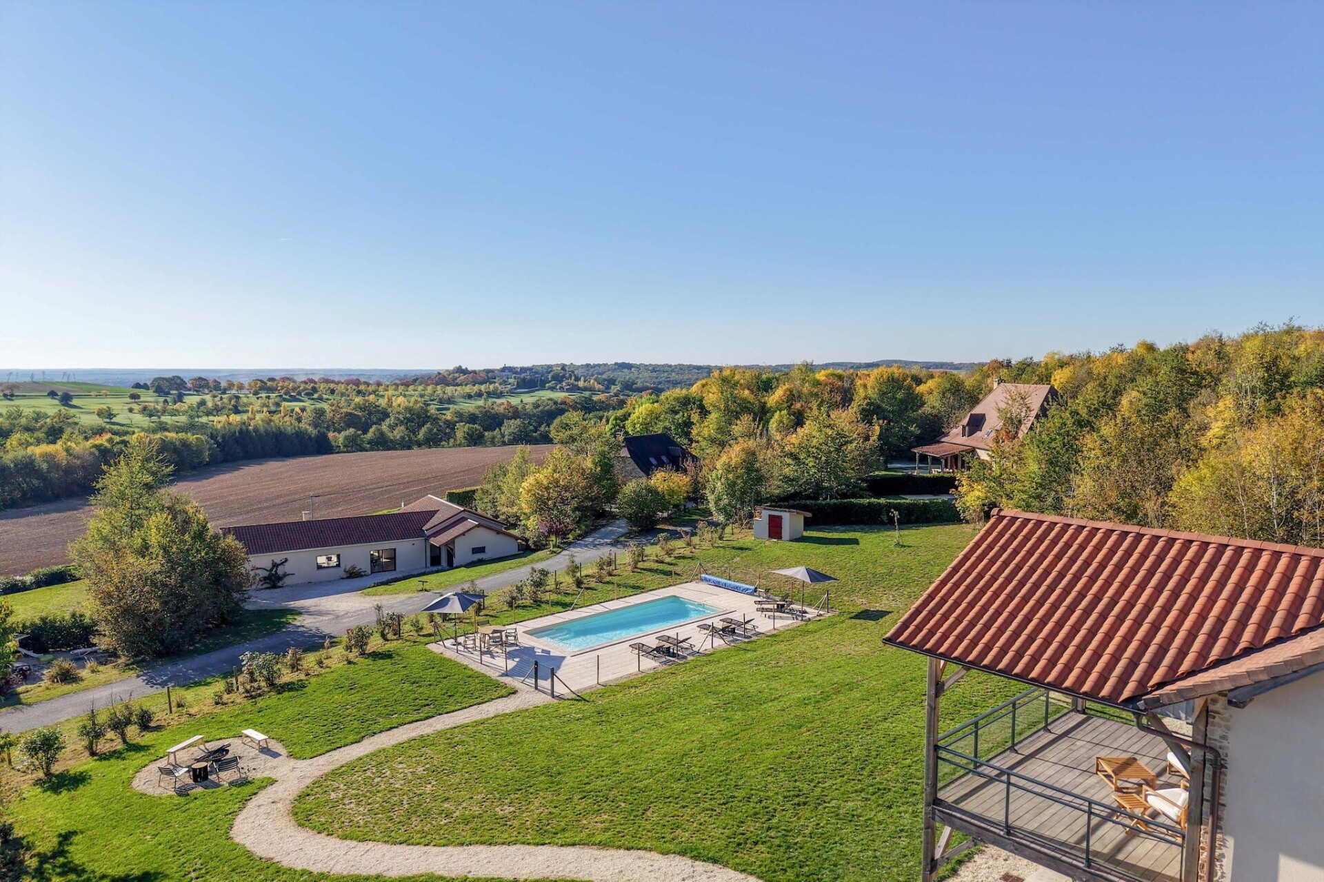 Brouillac is ideaal gelegen op de grens van de Dordogne, Corrèze en Haute-Vienne, en biedt gemakkelijke toegang tot culturele schatten zoals de prehistorische grotten van Lascaux en Tourtoirac, en de kastelen van Hautefort, Pompadour en Beynac. Nabijgelegen steden zoals Périgueux, Sarlat en Limoges bieden een rijke geschiedenis en een bruisend lokaal leven. Het omliggende landschap nodigt uit tot verkenning door pittoreske dorpjes, musea, tuinen en kanotochten op de rivier.