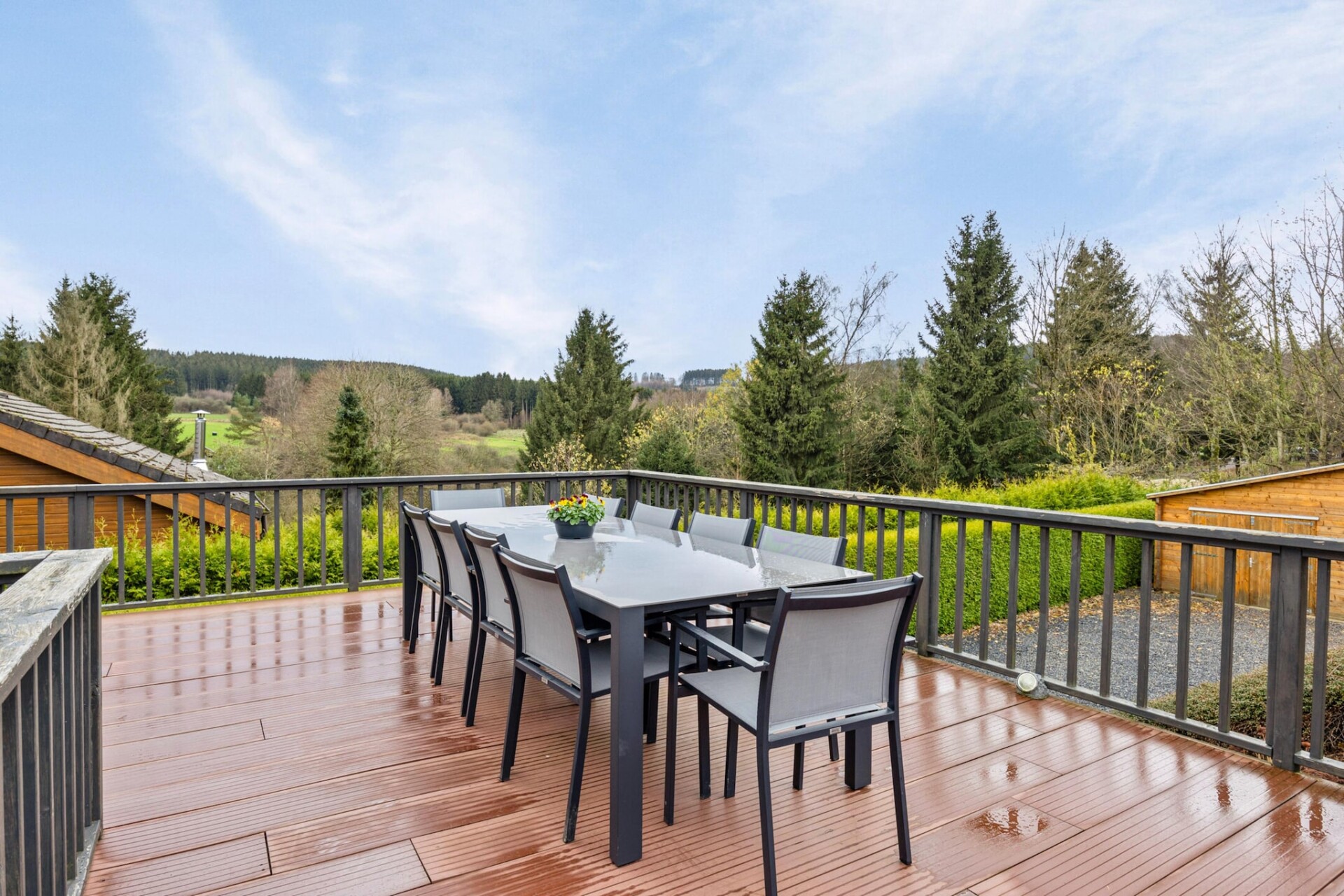 Deze ruime villa, gelegen in het rustige dorpje Manhay, biedt een ontspannen toevluchtsoord voor gezinnen en groepen. Op slechts 2 km van Dochamps en omgeven door bossen, ligt het dicht bij topattracties zoals Parc Chlorophylle, een natuurpark perfect voor kinderen en wandelaars, en het historische stadje La Roche-en-Ardenne, bekend om zijn middeleeuwse kasteel en de charme van de rivier. Voor avonturiers zijn Adventure Valley Durbuy en Parc Safari Monde Sauvage Aywaille binnen handbereik, met tokkelbanen, wilde dieren en buitenplezier. De villa beschikt over zes slaapkamers, waarvan drie met een eigen badkamer, en een gezellige woon-/eetkamer met een houtkachel en zitplaatsen voor tien personen. De open keuken is volledig uitgerust met moderne apparatuur en de ontspanningsruimte beschikt over een infraroodsauna. Gasten kunnen genieten van een omheinde tuin met een groot terras, trampoline, glijbaan, barbecue en gezelschapsspellen. Extra voorzieningen zijn onder andere een wasmachine, droger, fietsenstalling en een laadpaal voor elektrische auto's. In de buurt kunt u terecht voor Belgische specialiteiten in La Fourchette Paysanne, in het restaurant Le Patton voor de Franse keuken en in Biotanique voor gezonde Europese gerechten.