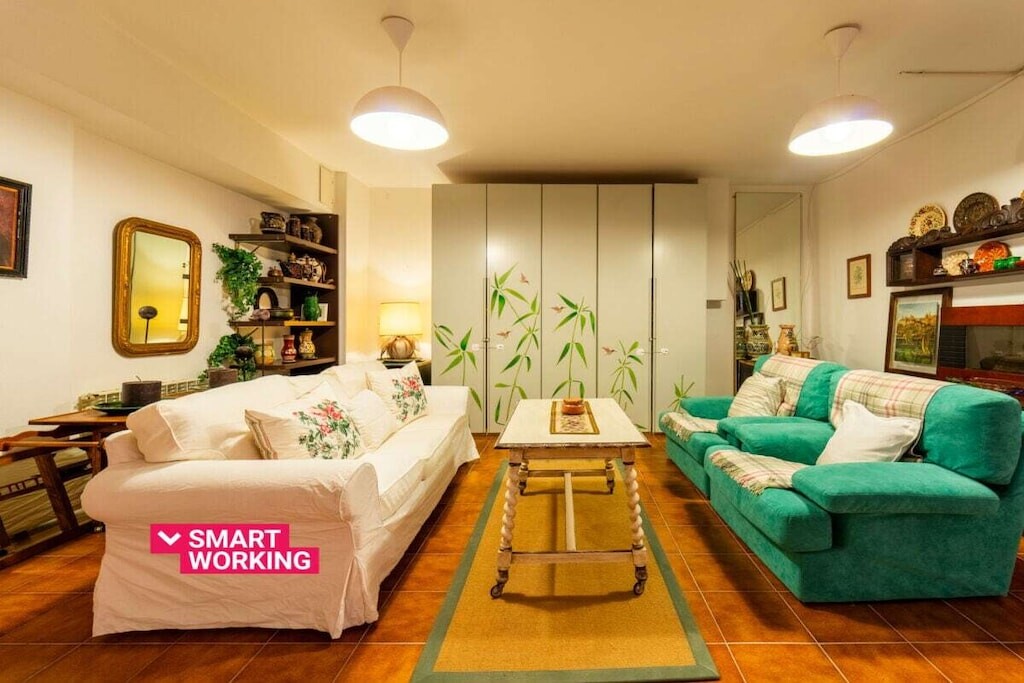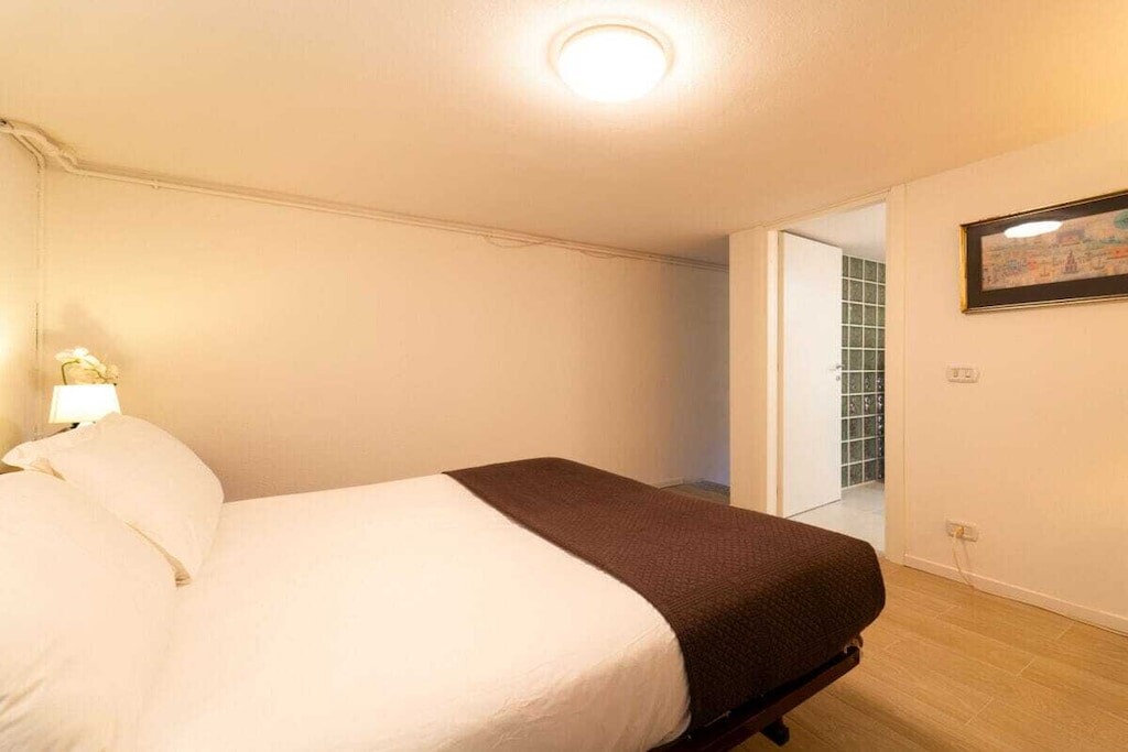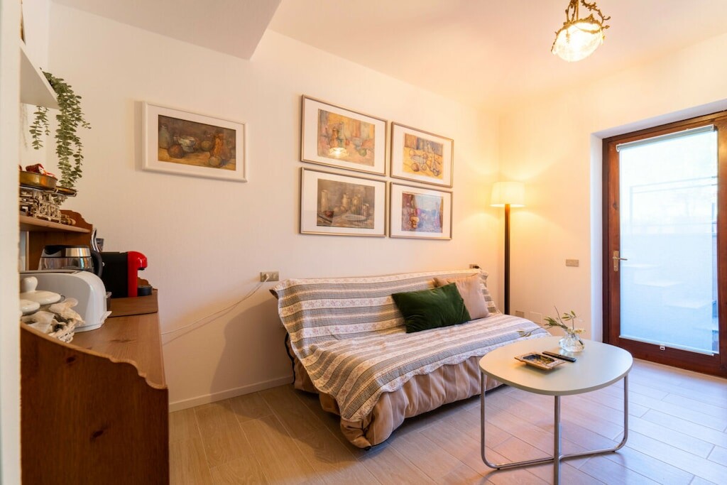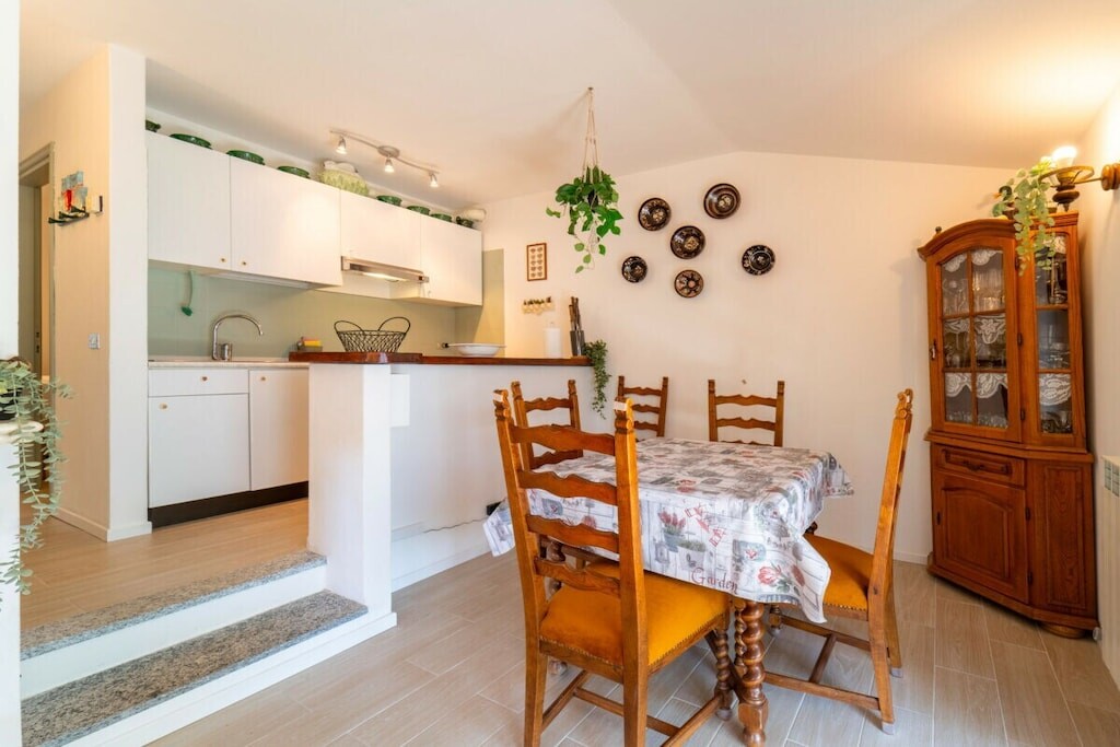 Het appartement, gelegen op de begane grond van een villa, is verdeeld over twee niveaus en komt uit op de grote woonkamer, voorzien van een comfortabele bank, televisie, eettafel en een open keuken met alle kookgerei, waaronder oven, waterkoker, fruitpers en broodrooster, is uitgerust. Vanaf hier komen de gasten in de tuin, die is uitgerust met een eethoek en een prachtig uitzicht biedt op het meer. Op de begane grond bevindt zich tevens een slaapkamer met een eenpersoonsbed en een badkamer met douche. Op de begane grond bevindt zich een taverne met een tweede woonkamer met banken en televisie, een slaapkamer met een tweepersoonsbed en een toilet.