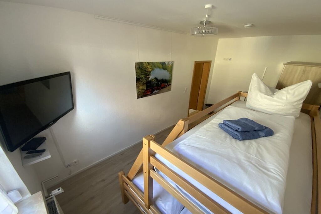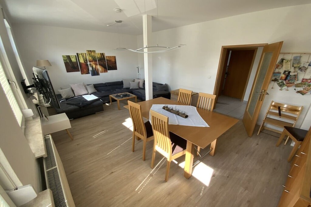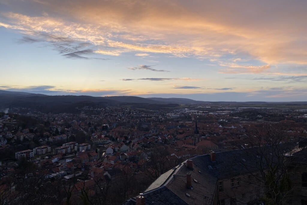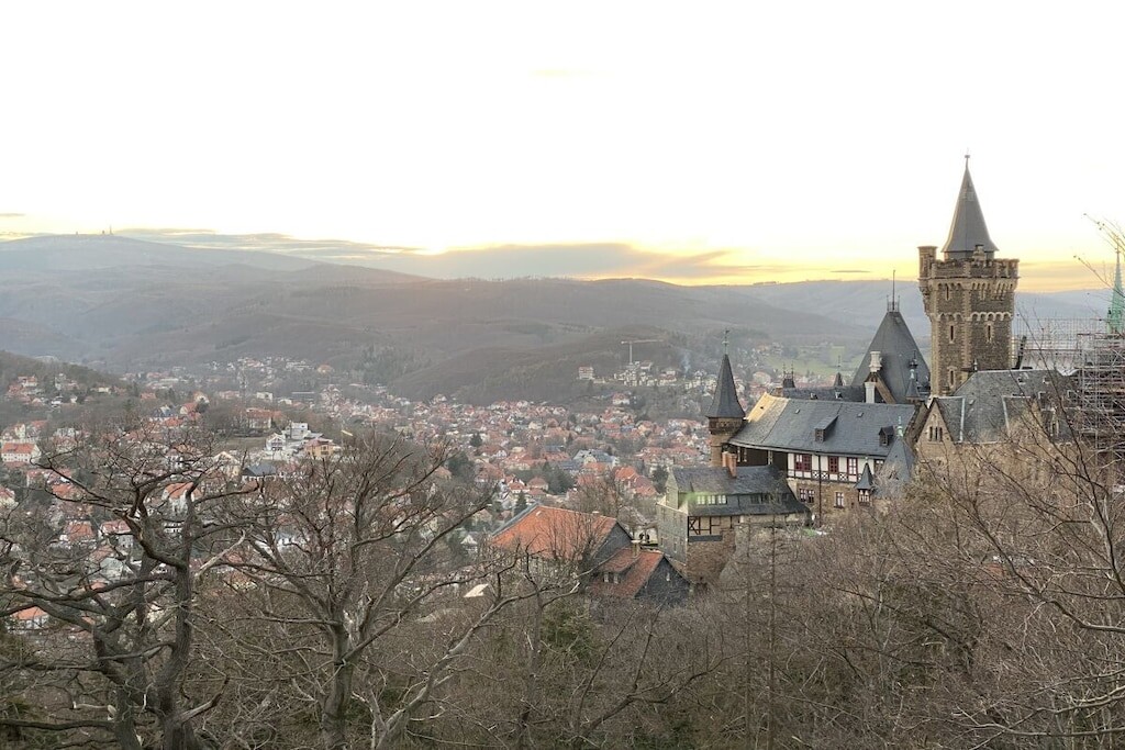 Gezellig modern vakantieappartement voor 6 personen + baby met terras dichtbij het centrum in Wernigerode met vanuit de woonkamer uitzicht op het kasteel.