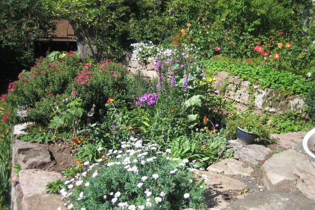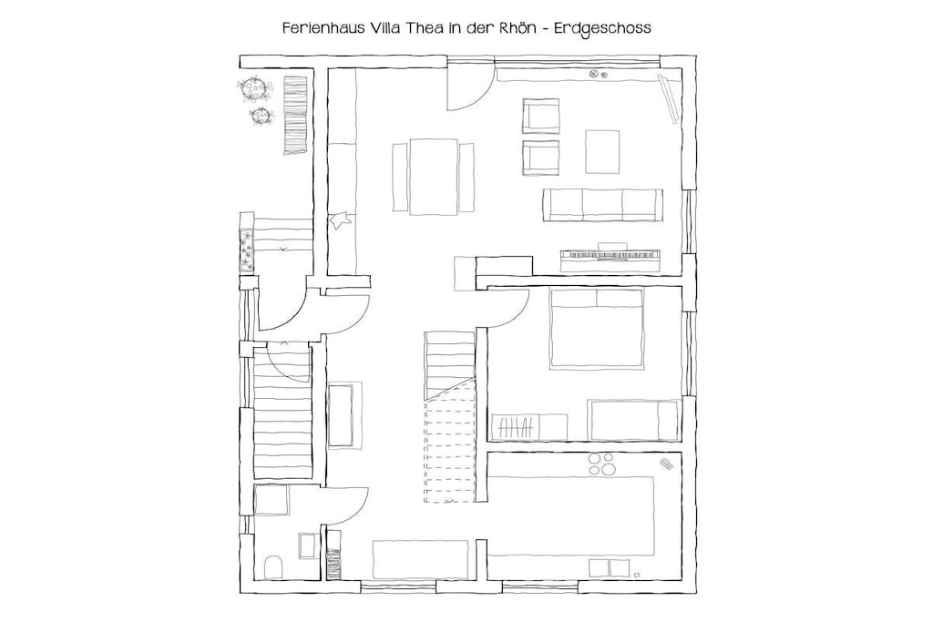 Het bijzondere aan Villa Thea: de ligging! Zeer rustig en idyllisch gelegen in een grote, zonnige terrasvormige tuin vol bloemen, fruit en met een prachtig uitzicht op de Rhön. En niet te vergeten: de schitterende sterrenhemel!