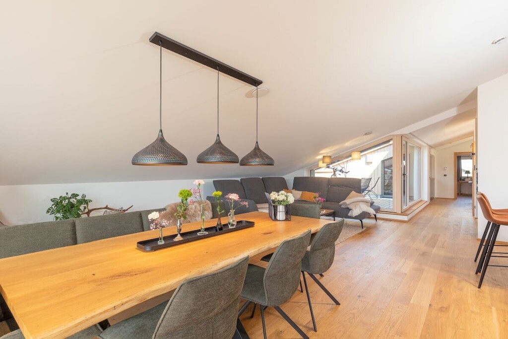 Koelkast, vaatwasser, vriesvakken, koffiezetapparaten, broodrooster, waterkoker, magnetron, Thermomix T31 (incl. kookboeken), kookplaat met Bora afzuigkap, eierkoker, frisdrankautomaat, serviesgoed is genoeg voor 12 personen. Daarnaast zijn een 65 inch OLED TV (elektrisch draaibaar), wasmachine en droger gratis beschikbaar. Geniet van de loggia met een hoekbank, twee comfortabele fauteuils, twee ligstoelen en voldoende ruimte, sfeer en uitzicht op de bergen om van de dag te genieten en de avond af te sluiten. Exclusieve TYLA sauna gemaakt van grenenhout. Voldoende handdoeken, vloermatten, toiletpapier, föhn, twee slaapkamers, carport/parkeerplaats, fitnessruimte.