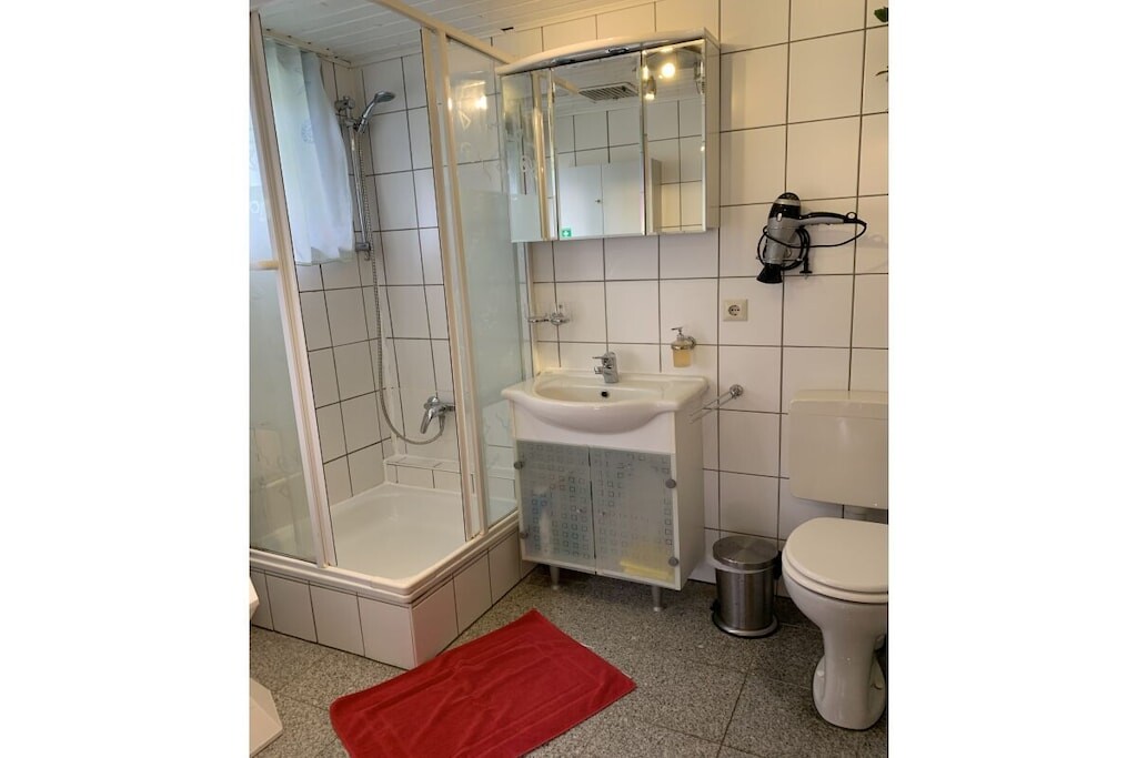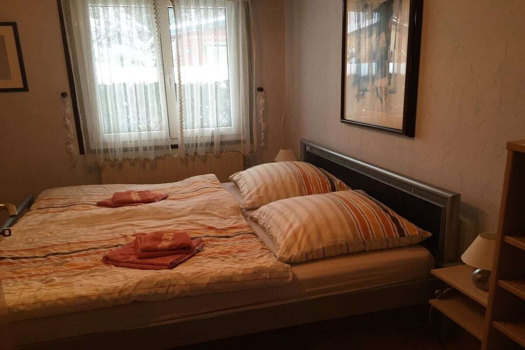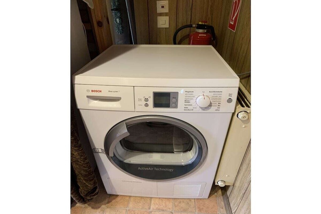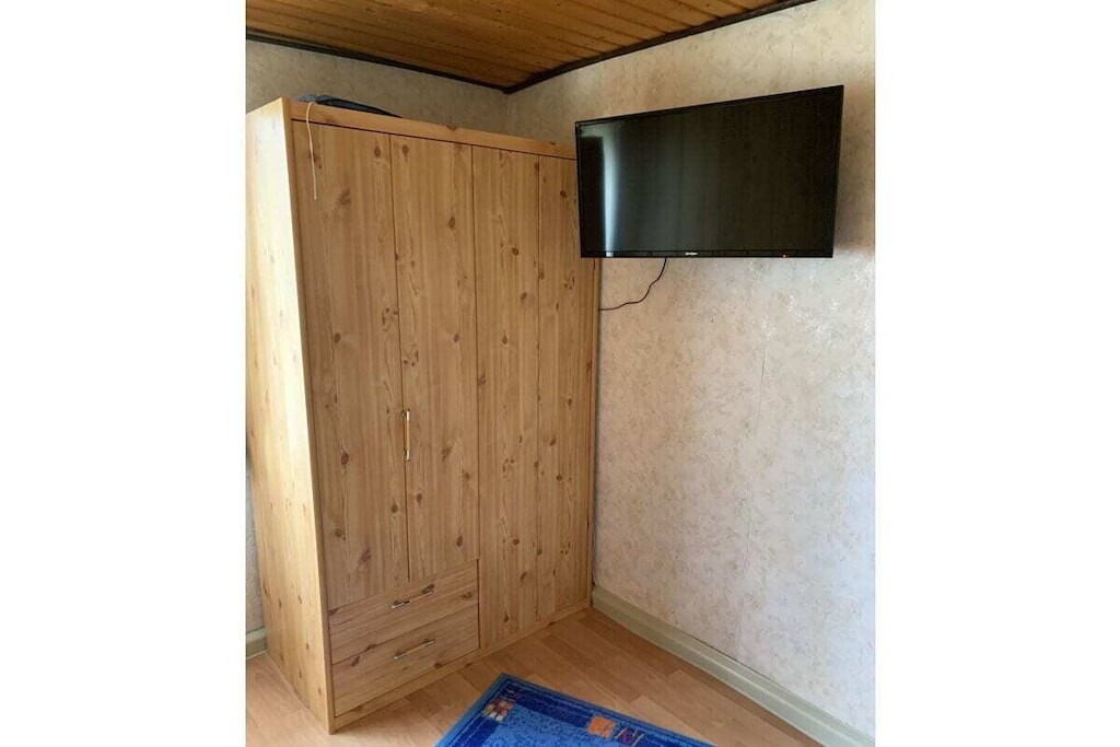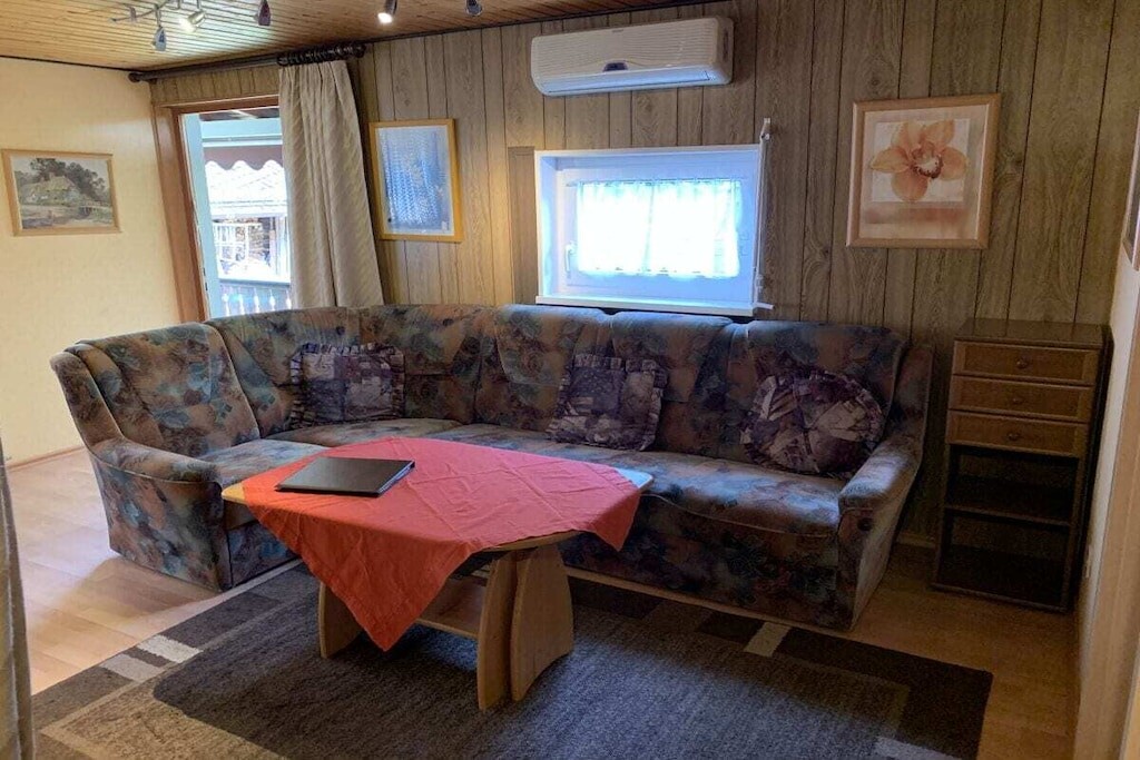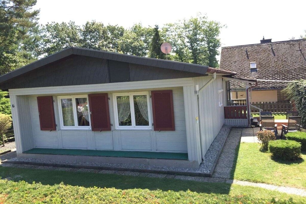 In de gedeeltelijk overdekte serre (met een zeer grote en lange raampartij) bevindt zich een eet- en ontspanningsruimte. Er is ook een slaapkamer met een tweepersoonsbed. De kinderkamer heeft een stapelbed. Er is ook een badkamer met toilet, douche en föhn. Er is ook een garage, een wasmachine en droger, een parkeerplaats en centrale verwarming op gas.