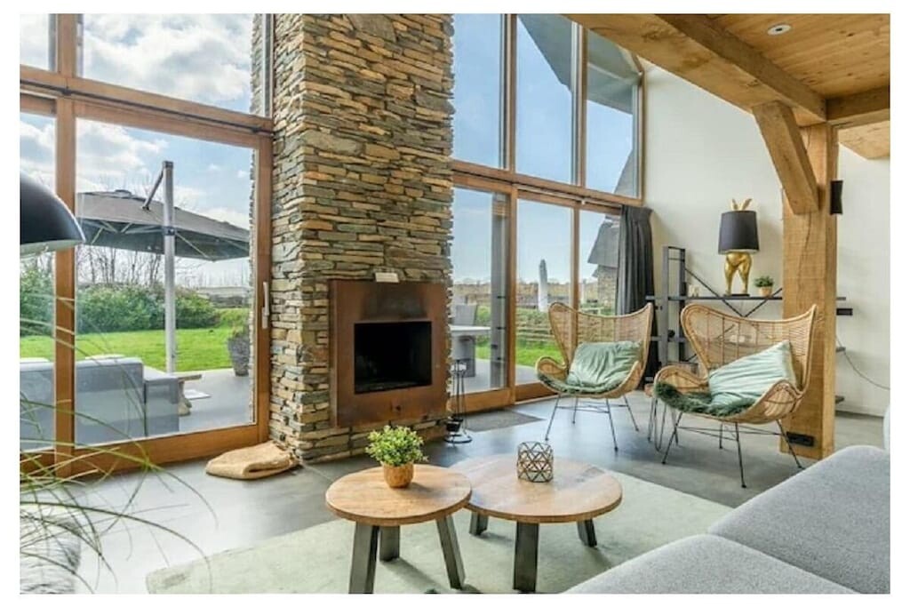 De ruime woonkamer beschikt over een zithoek met open haard, smart-tv en muziekinstallatie. Er is een eethoek met een grote eettafel voor 6 personen. De open keuken is van alle gemakken voorzien, waaronder een koelkast met vriesvak, een combimagnetron, een steamer, een vaatwasser, een Quooker en een koffiezetapparaat.