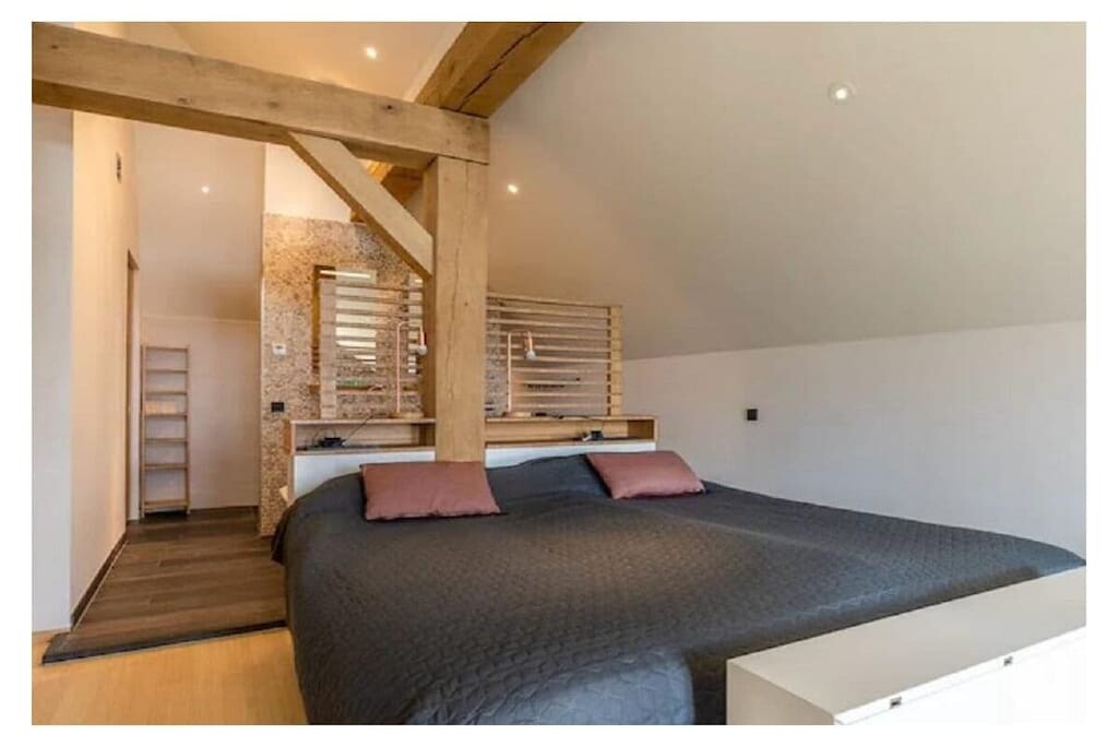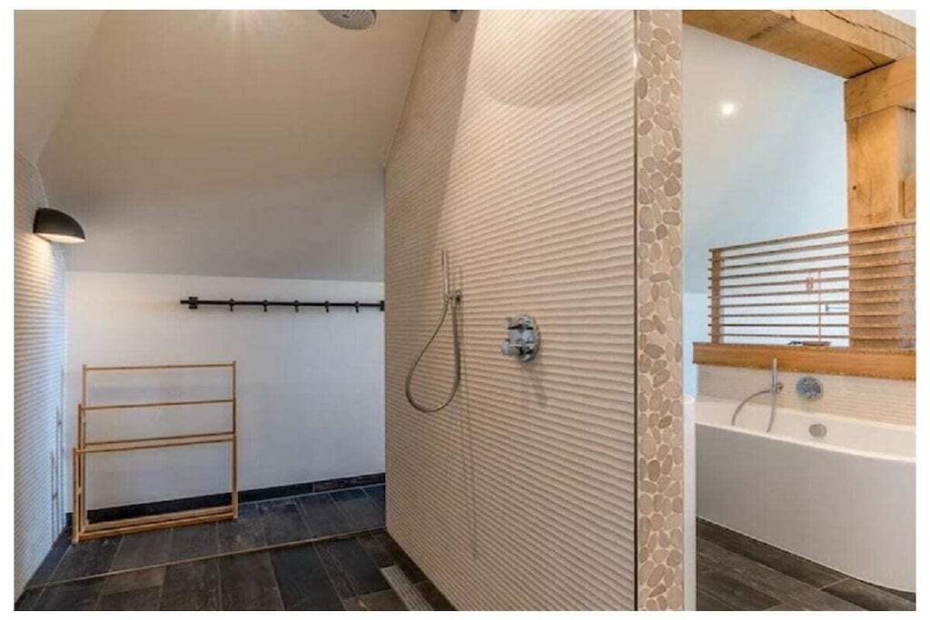 Op de begane grond bevindt zich één slaapkamer met een en-suite badkamer, een inloopdouche met twee regendouches en een dubbele wastafel. Op de eerste verdieping bevinden zich twee slaapkamers met een en-suite badkamer. Deze badkamers zijn voorzien van een ruime inloopdouche en een ligbad. Alle slaapkamers in de woning zijn voorzien van comfortabele boxspringbedden en een tv. De bedden zijn standaard opgemaakt en handdoeken zijn aanwezig.