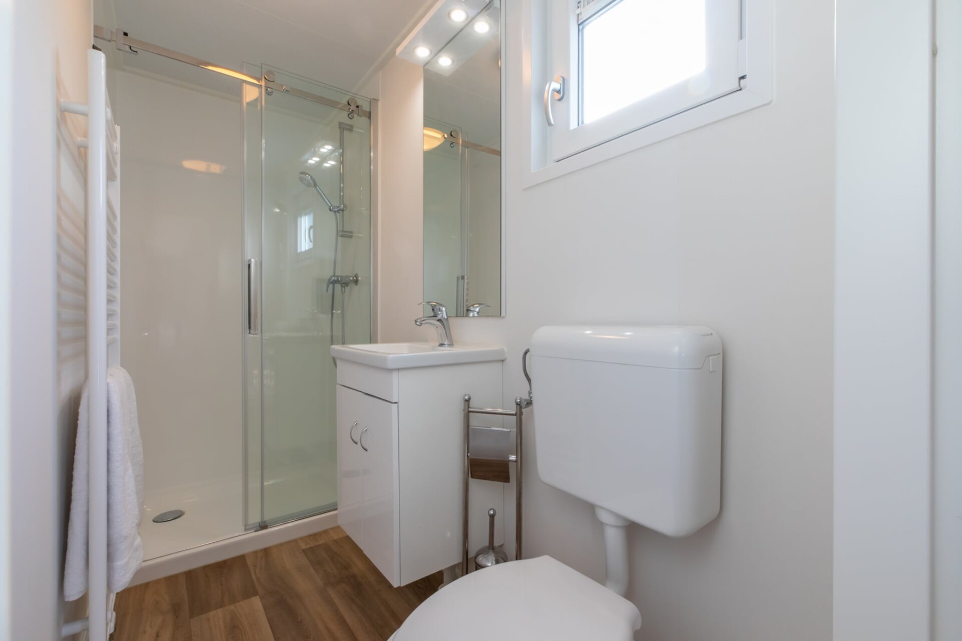 De moderne badkamer op deze verdieping is voorzien van een verfrissende douche, wastafel en toilet, waardoor u gemakkelijk kunt ontspannen na een dag vol verkenning. Stap naar buiten op het privéterras, waar u kunt genieten van frisse lucht en een prachtig uitzicht, of gewoon kunt ontspannen in de tuin, ideaal voor rustige momenten of ontspannende buitenactiviteiten. Er is voldoende parkeergelegenheid beschikbaar, zodat uw aankomst en vertrek zo gemakkelijk en stressvrij mogelijk zijn.