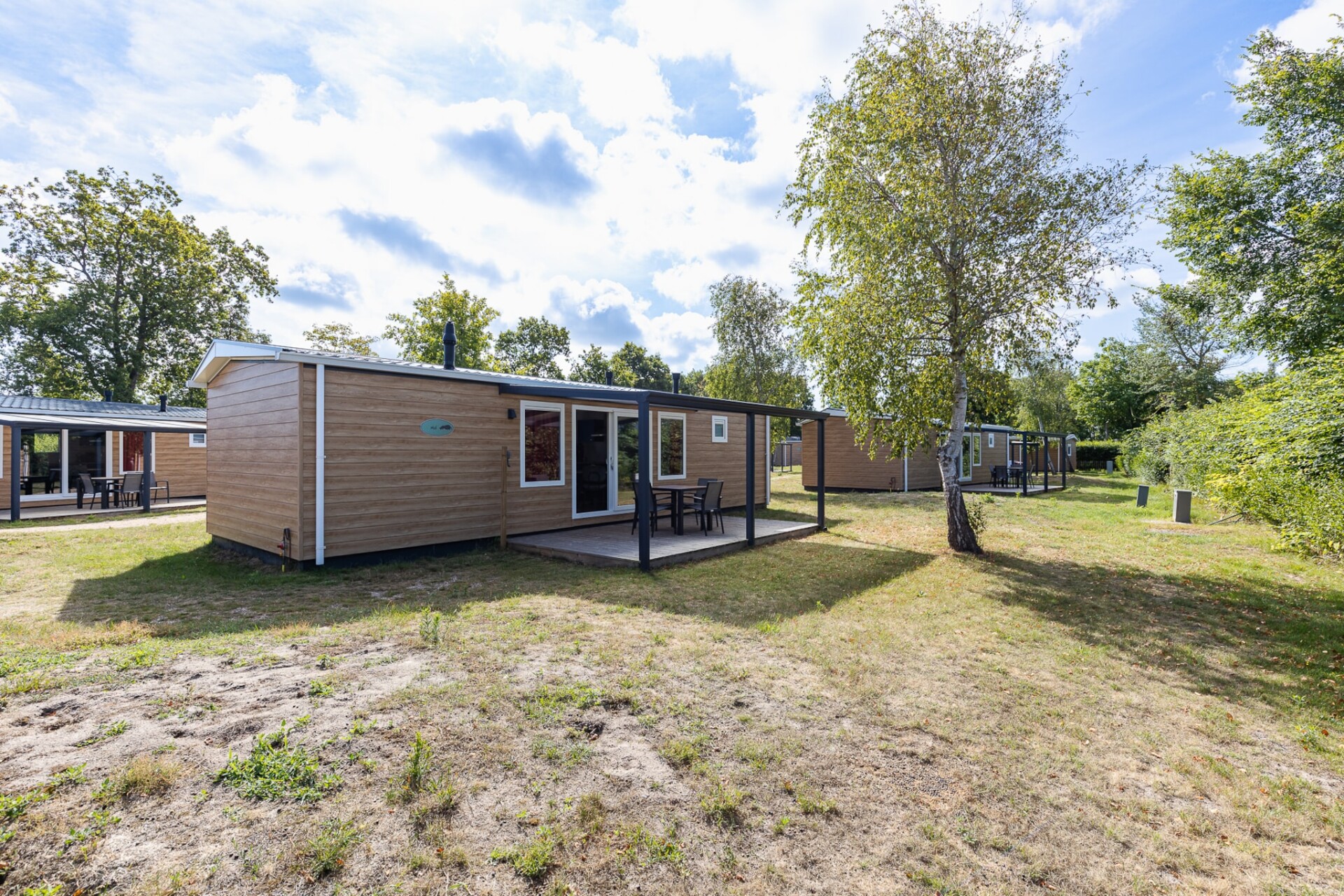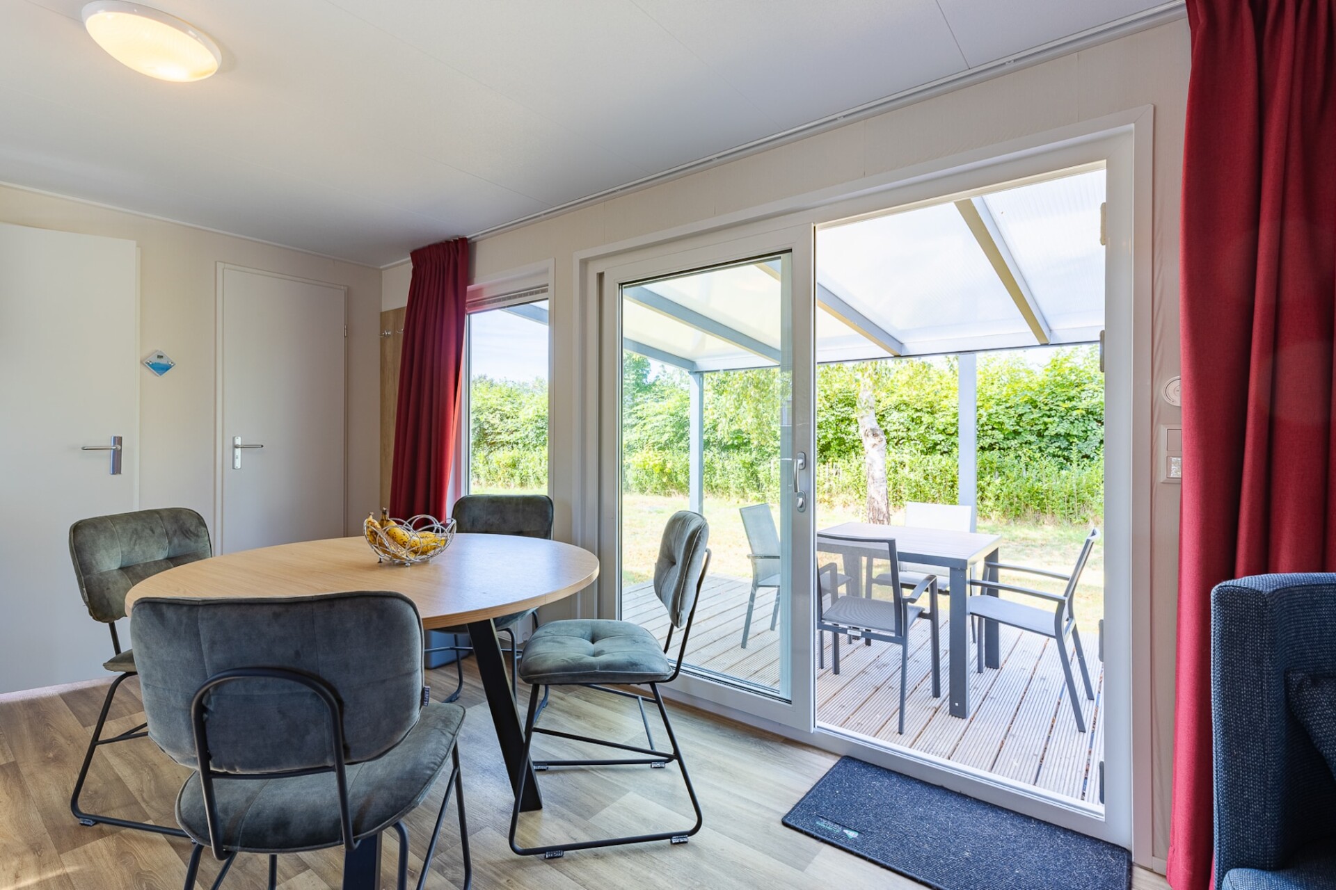 Stap de begane grond van deze luxe villa binnen, waar comfort en stijl naadloos samensmelten. De ruime eetkamer beschikt over een gezellige zithoek, perfect voor intieme maaltijden of ontspannen momenten met geliefden. De volledig uitgeruste keuken is een droom voor chef-koks, met een combimagnetron en een koel-vriescombinatie, wat gemak biedt bij het bereiden van maaltijden. Met twee zorgvuldig ontworpen slaapkamers, een met een tweepersoonsbed en de andere met twee eenpersoonsbedden, biedt deze verdieping rustgevende accommodatie voor gasten die op zoek zijn naar rust en privacy.