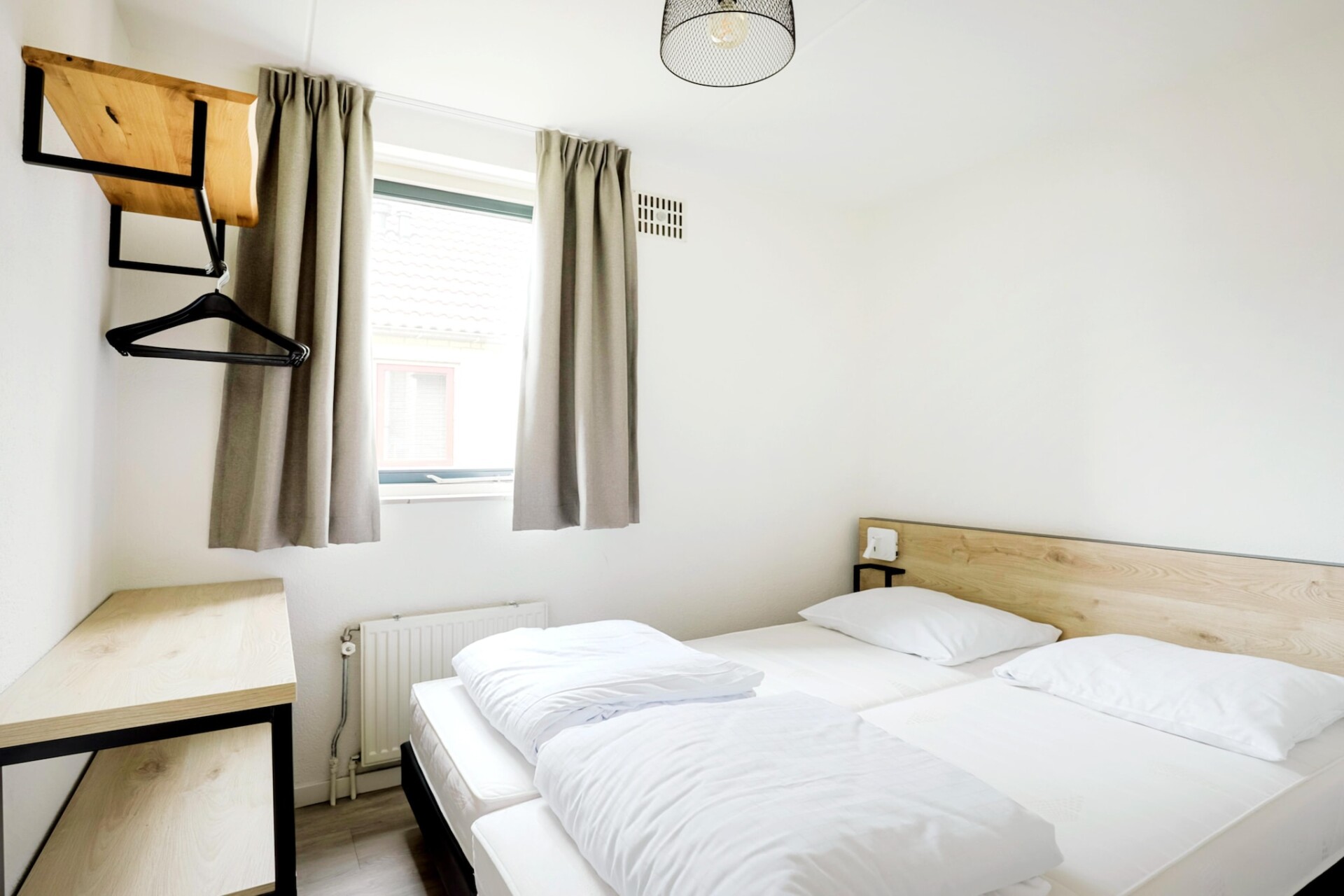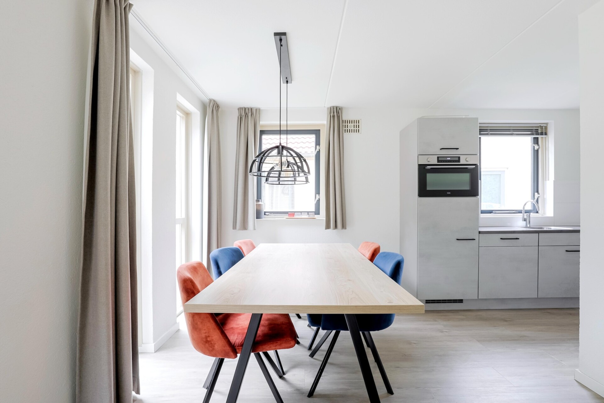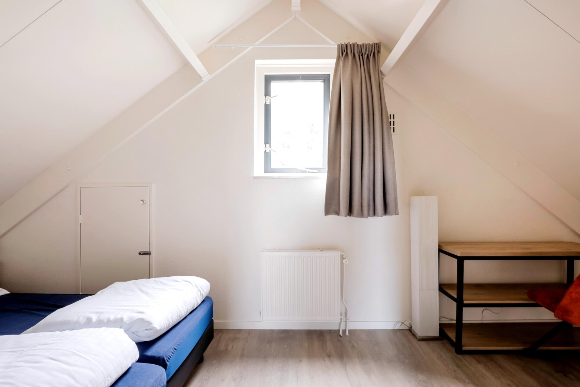 Het interieur is gelijkvloers ingericht en biedt plaats aan vier gasten. Er zijn twee slaapkamers, elk voorzien van twee eenpersoonsbedden. De woonkamer is licht en uitnodigend, met een gezellige zithoek met een tv en een eettafel. Voor wie graag zelf kookt, is de moderne keuken volledig uitgerust met een vaatwasser, oven, magnetron en koelkast. De bungalow beschikt ook over een badkamer met douche en toilet, van waaruit de privésauna gemakkelijk toegankelijk is. Essentiële voorzieningen zoals supersnelle wifi en centrale verwarming zijn aanwezig om het hele jaar door een comfortabel verblijf te garanderen.