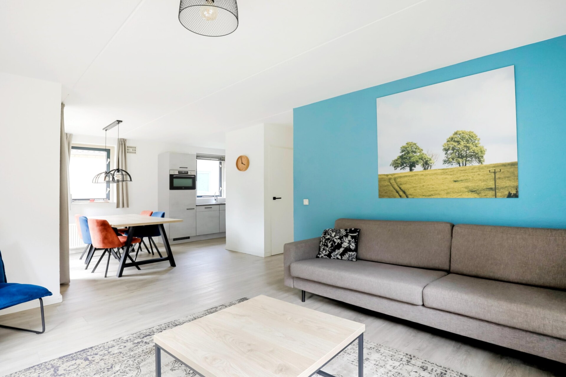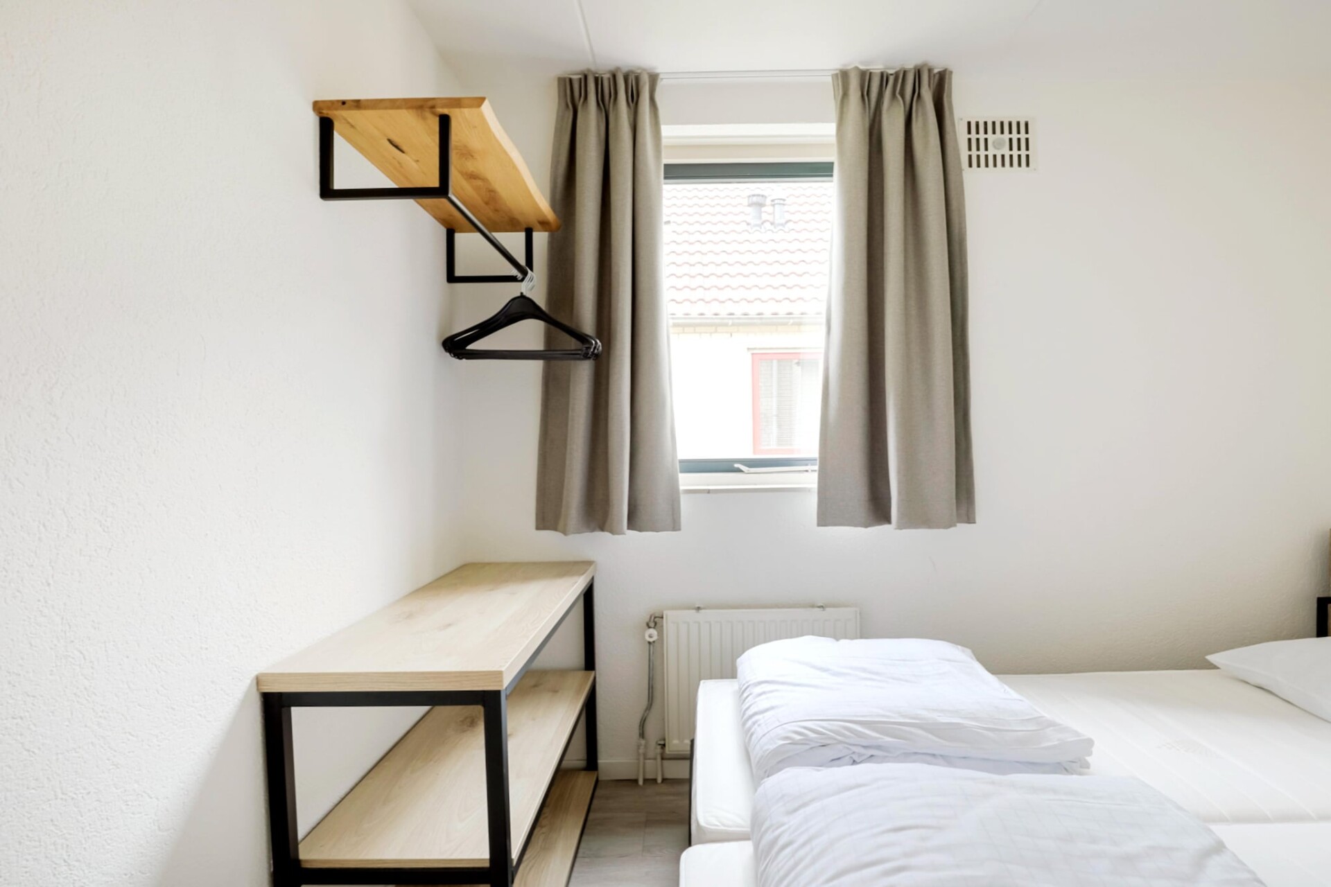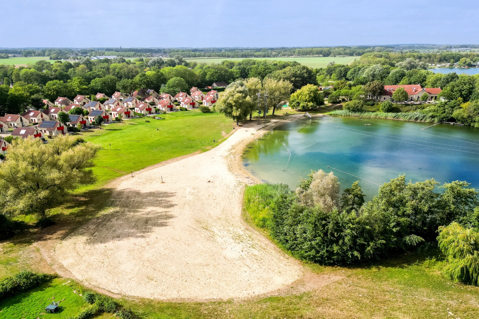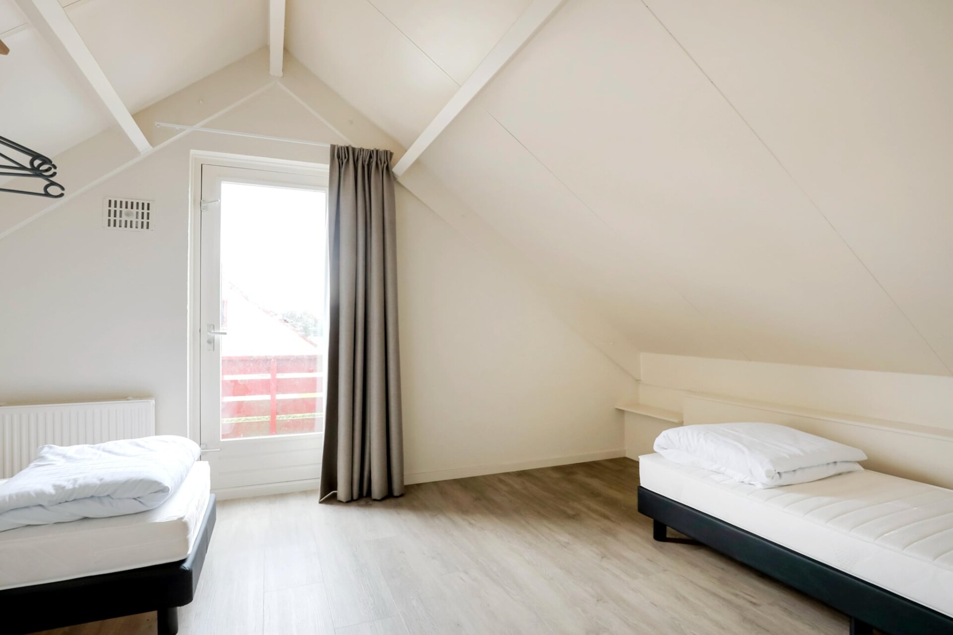 Het interieur is gelijkvloers ingericht en biedt plaats aan vier gasten. Er zijn twee slaapkamers, elk voorzien van twee eenpersoonsbedden. De woonkamer is licht en uitnodigend, met een gezellige zithoek met een tv en een eettafel. Voor wie graag zelf kookt, is de moderne keuken volledig uitgerust met een vaatwasser, oven, magnetron en koelkast. De bungalow beschikt ook over een badkamer met douche en toilet, van waaruit de privésauna gemakkelijk toegankelijk is. Essentiële voorzieningen zoals supersnelle wifi en centrale verwarming zijn aanwezig om het hele jaar door een comfortabel verblijf te garanderen.