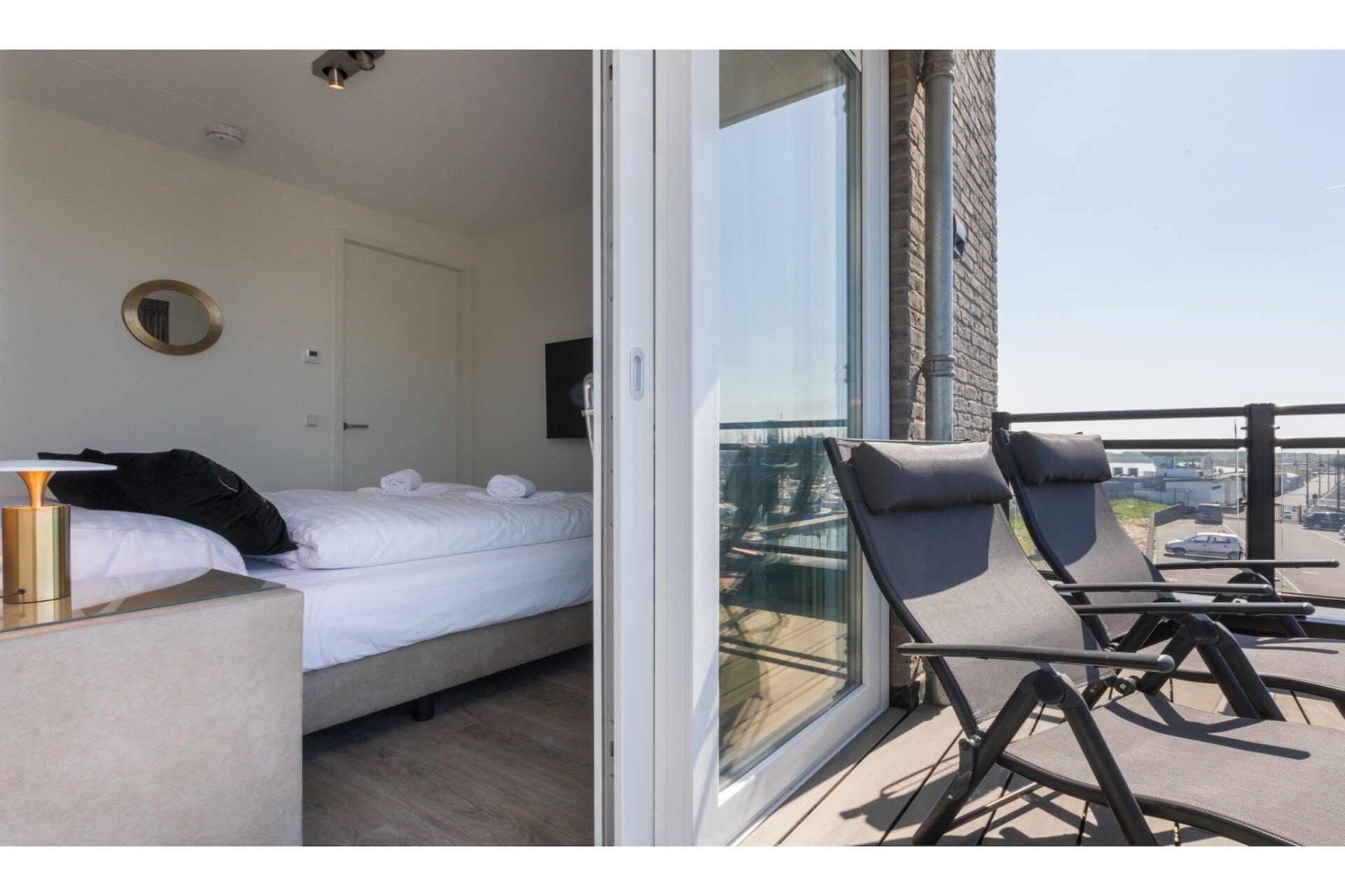 Dit appartement voor 4 personen met lift is gelijkvloers en ligt op de eerste etage van het kleinschalige appartementencomplex Vista Maris. Ook huisdieren zijn hier van harte welkom, maximaal twee. De ramen van het appartement lopen door tot aan de vloer, waardoor er in alle vertrekken veel licht naar binnen valt. Via de schuifdeuren stap je op de grote balkons (in totaal 27 m2) met aan twee kanten waterbeleving. Op beide slaapkamers staan een boxspring van 180x200 cm, twee nachtkastjes en een kledingkast. Ook is er een opvouwbaar babybed (60x120 cm) aanwezig. In de slaapkamer aan de havenzijde hangt een tv. Rustig wakker worden met uitzicht op het water aan beide kanten… wat wil je nog meer? De moderne inrichting (urban chic) is met zorg uitgezocht om je direct thuis te laten voelen. De materialen zijn hoogwaardig en voelen warm en huiselijk aan. Kom je na een lange dag in de buitenlucht thuis, dan kun je heerlijk ontspannen achter de flatscreen televisie in de woonkamer. In de keuken staat een combimagnetron, een vaatwasser, een koelkast, een vriezer en een broodrooster. Ook is er een Nespresso en een filter koffiezetapparaat aanwezig net als een combinatie wasmachine/droger.