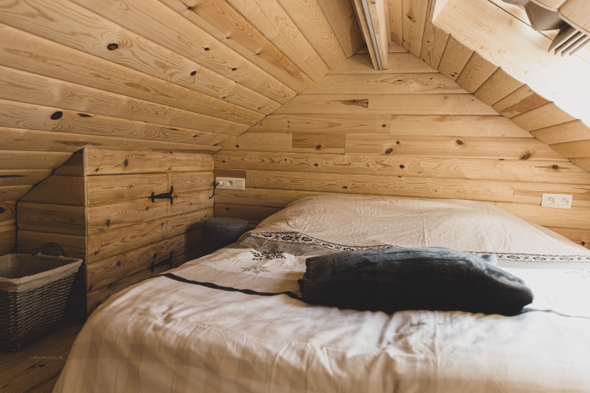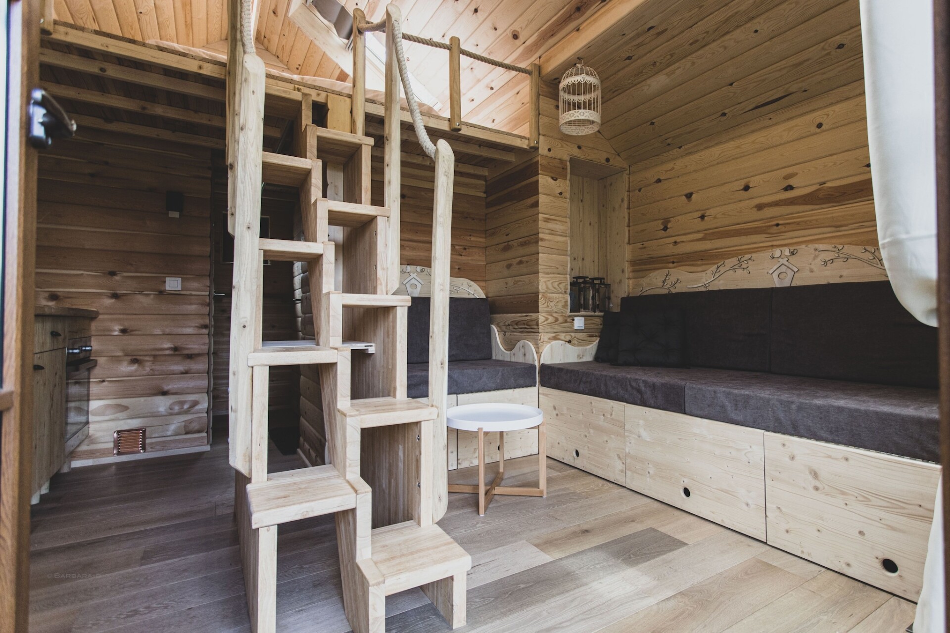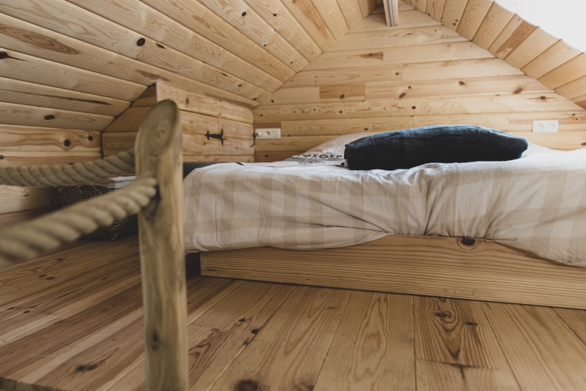 De knusse blokhut beschikt over een slaapkamer op de mezzanine met een comfortabel tweepersoonsbed en een warm interieur met houten accenten. De volledig uitgeruste kitchenette is voorzien van een keramische kookplaat, oven, koffiezetapparaat, waterkoker, broodrooster en koel-/vriescombinatie. De badkamer is voorzien van een douche, wastafel en toilet.