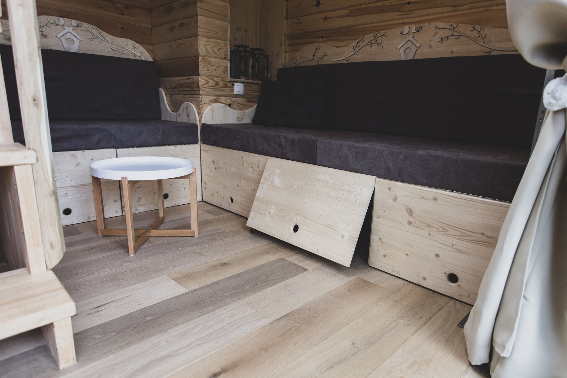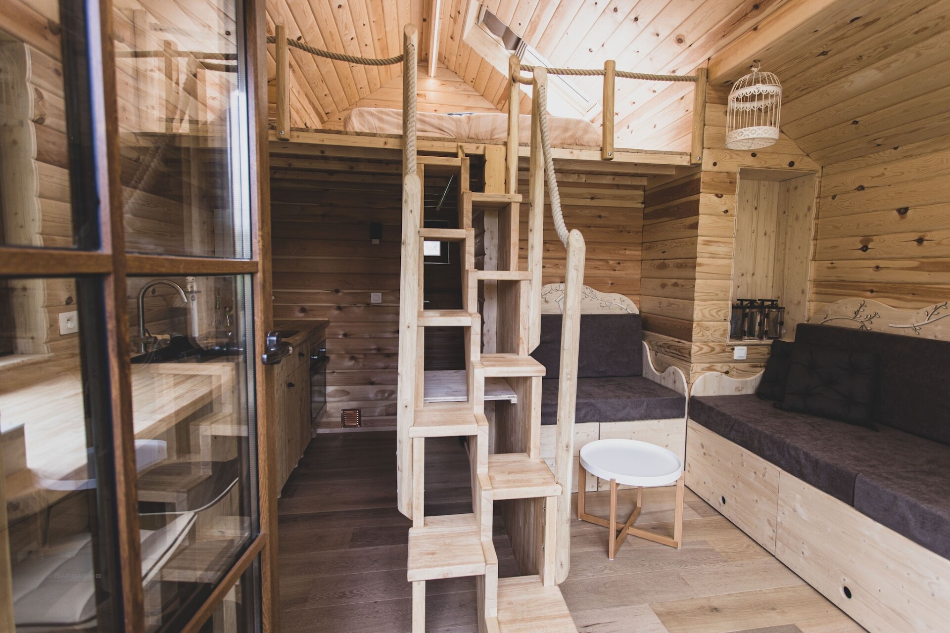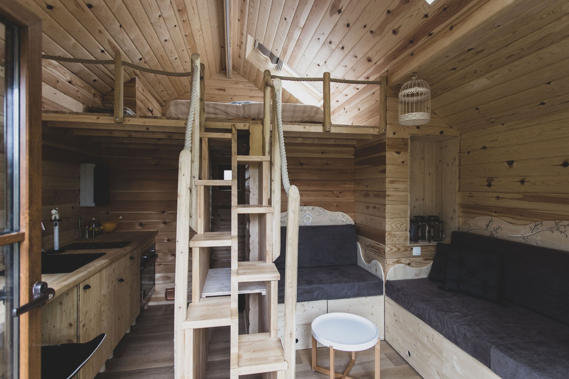 De knusse blokhut beschikt over een slaapkamer op de mezzanine met een comfortabel tweepersoonsbed en een warm interieur met houten accenten. De volledig uitgeruste kitchenette is voorzien van een keramische kookplaat, oven, koffiezetapparaat, waterkoker, broodrooster en koel-/vriescombinatie. De badkamer is voorzien van een douche, wastafel en toilet.