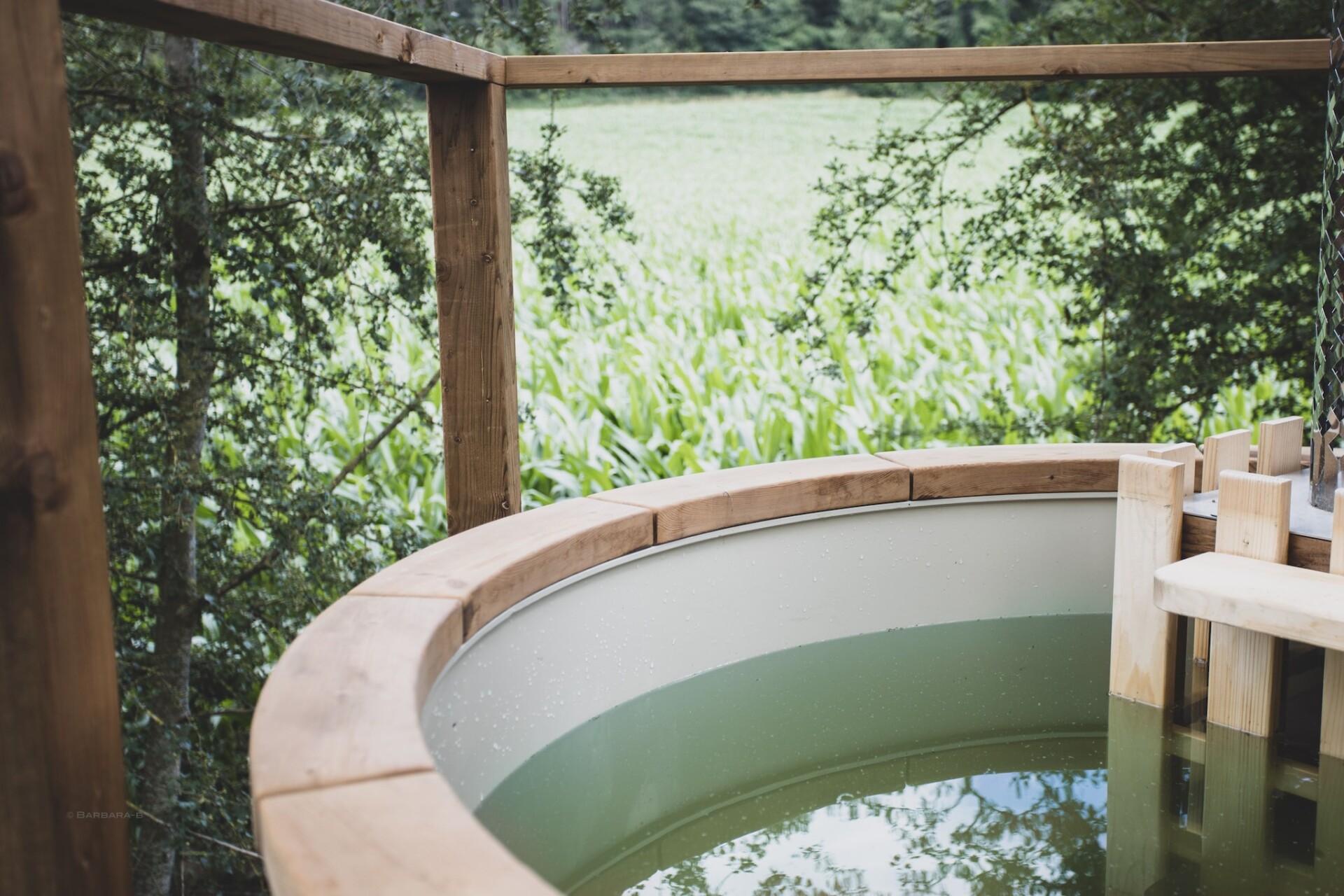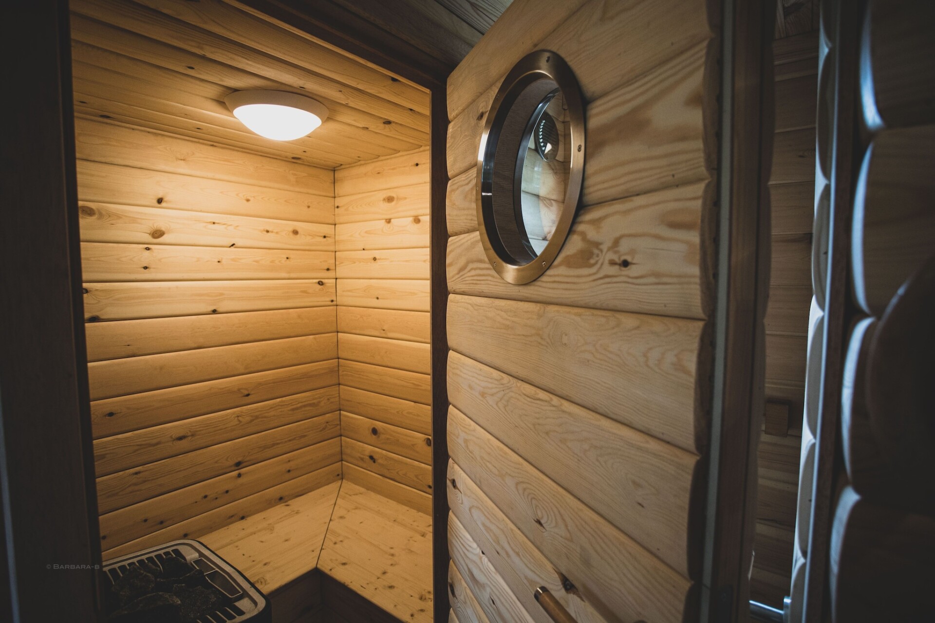 Kom tot rust in de privésauna, ontspan in de infraroodsauna of geniet van de Scandinavische hottub op het ruime terras, omgeven door de natuur. U vindt er ook ligstoelen, een bad of douche en comfortabel tuinmeubilair, perfect om 's ochtends van een kopje koffie of 's avonds van een drankje buiten te genieten. Op koelere dagen zorgt elektrische verwarming voor een gezellige en gastvrije sfeer. Het balkon of terras is de ideale plek om de zonsondergang te bekijken of om te ontspannen na een wandeling in het nabijgelegen bos.