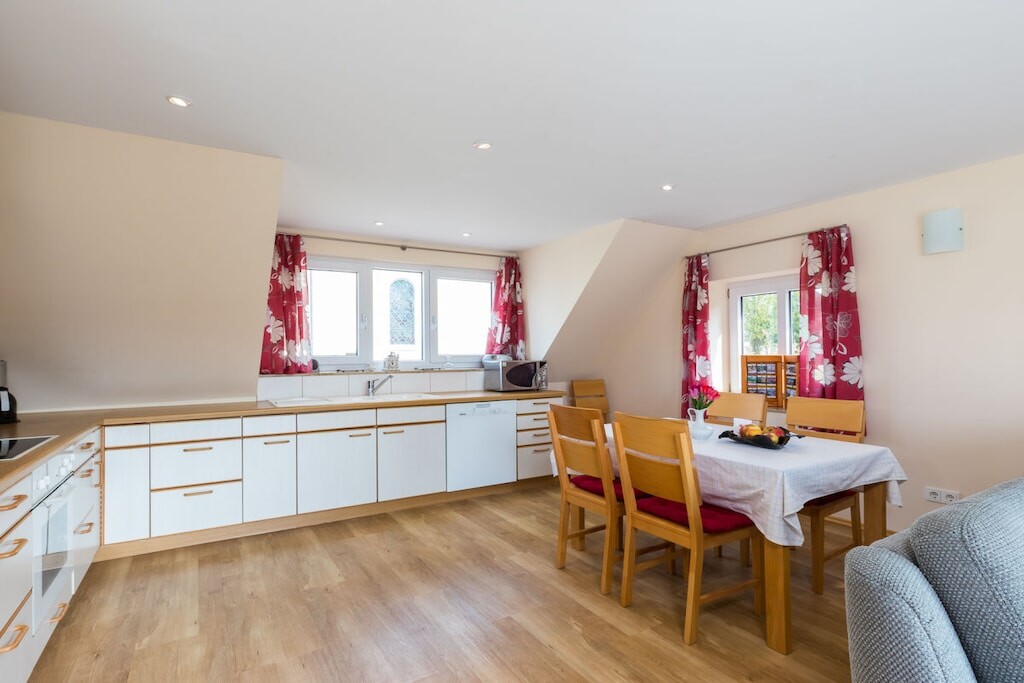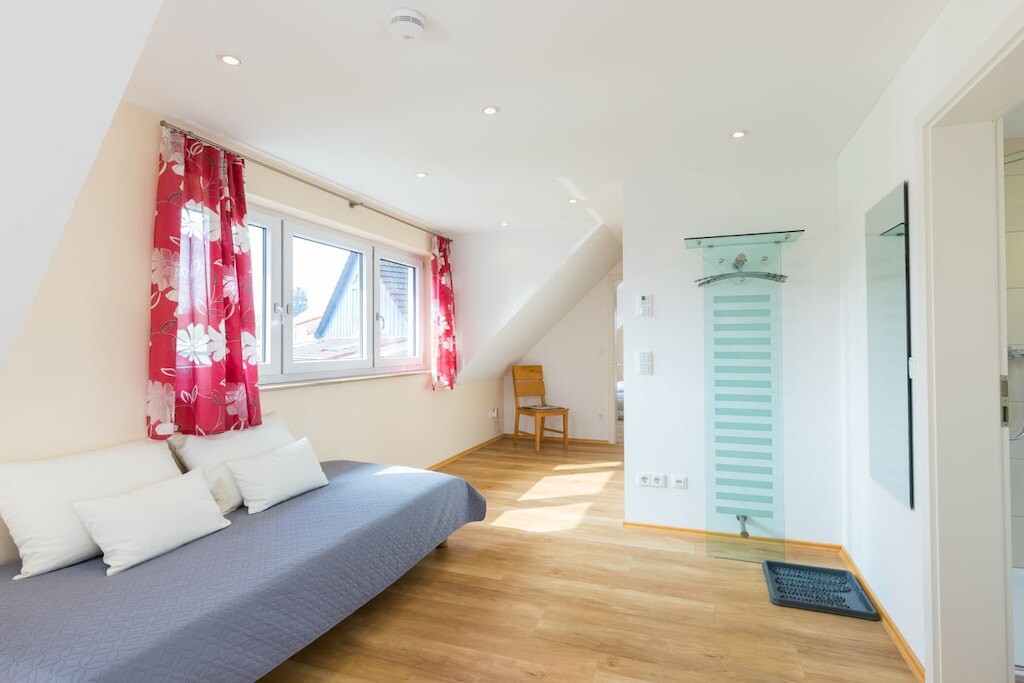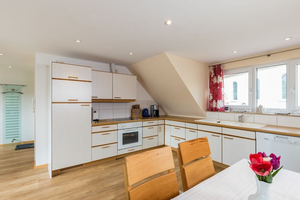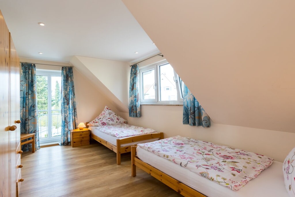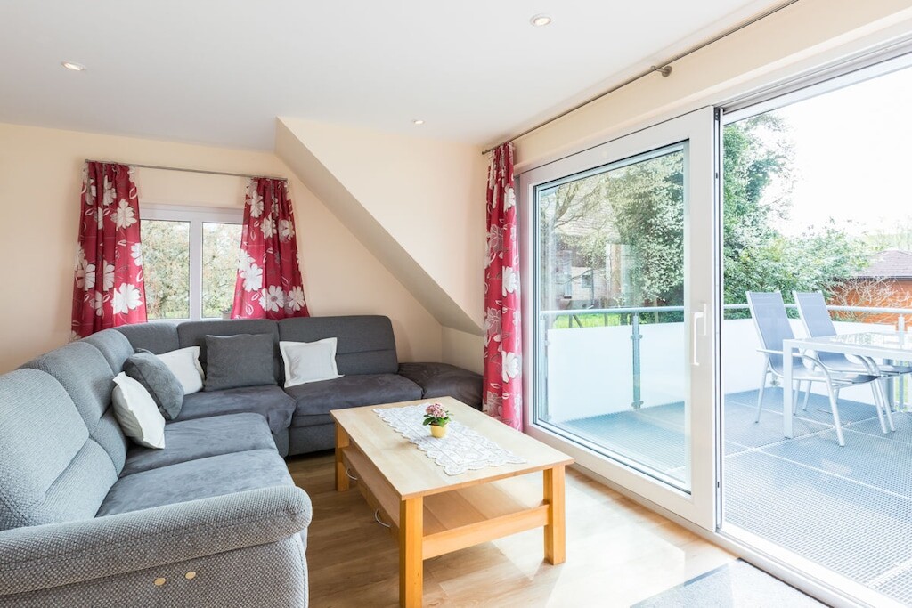 Vakantieappartement met lichte kamers, comfort, ruime woonkamer, 2 slaapkamers, balkon en toegang tot de tuin. Gratis WiFi.