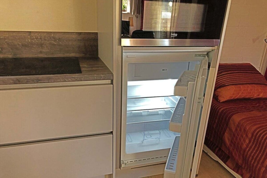 De slaapkamer heeft een tweepersoonsbed (dat kan worden opgesplitst in twee eenpersoonsbedden). De woonkamer heeft ook een eenpersoonsbed (90 x 2,00 m, dat kan worden opgesplitst in twee eenpersoonsbedden).