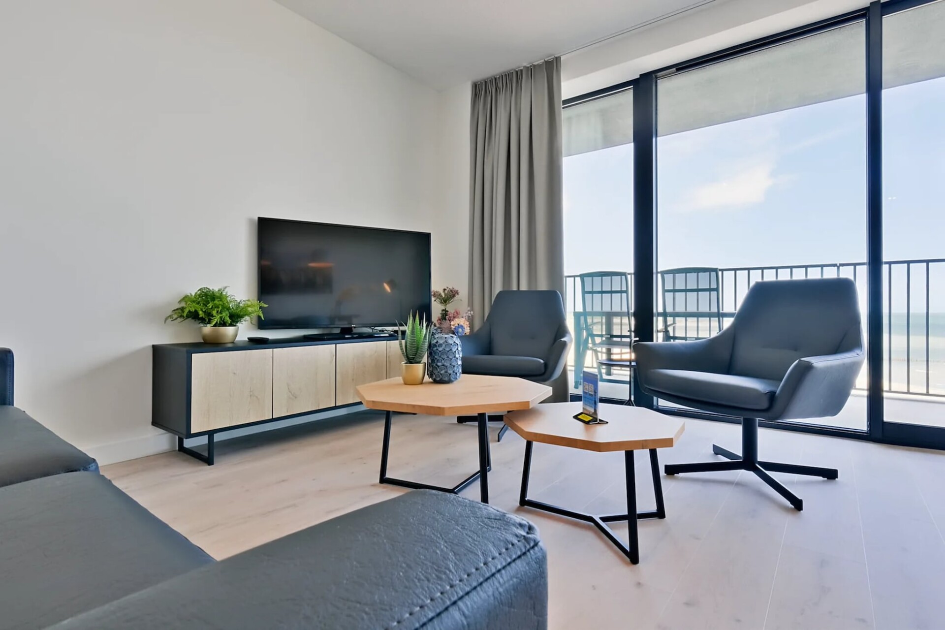 Word wakker met eindeloos uitzicht op zee in dit luxe Duinen Panorama appartement. Deze ruime woning ligt hoog in het gebouw en combineert een ultramodern interieur met een adembenemend uitzicht op de Noordzee, de jachthaven en de gouden duinen van Breskens. De grote woonkamer loopt naadloos over in een stijlvolle open keuken en eethoek, perfect voor een langzaam ontbijt of een gezellig diner met uitzicht. Stap naar buiten op een van de twee ruime balkons, een om te dineren met het geluid van de golven op de achtergrond, de andere voor rustige avonden met uitzicht op de bruisende jachthaven.