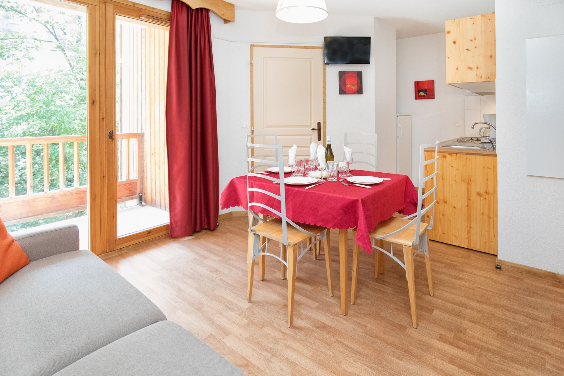 HAMEAU – FLAT 2 211 is een gezellig 3-sterrenappartement op de tweede verdieping van de residentie Le Hameau des Eaux d'Orelle, gelegen in het hart van de 3 Vallées in Frankrijk. Dit appartement van 32 m² is perfect voor maximaal zes gasten en beschikt over een woonkamer met terras en televisie, en een open keuken met koelkast, vriezer, vaatwasser, magnetron, koffiezetapparaat, waterkoker en broodrooster. De slaapgelegenheid bestaat uit een tweepersoons slaapbank in de woonkamer (2x 80x190), een tweepersoonsbed in de slaapkamer (160x200) en twee stapelbedden in de hal (90x190). Het appartement beschikt over een badkamer met ligbad, een apart toilet en een balkon met uitzicht op de residentie en de omliggende bomen.