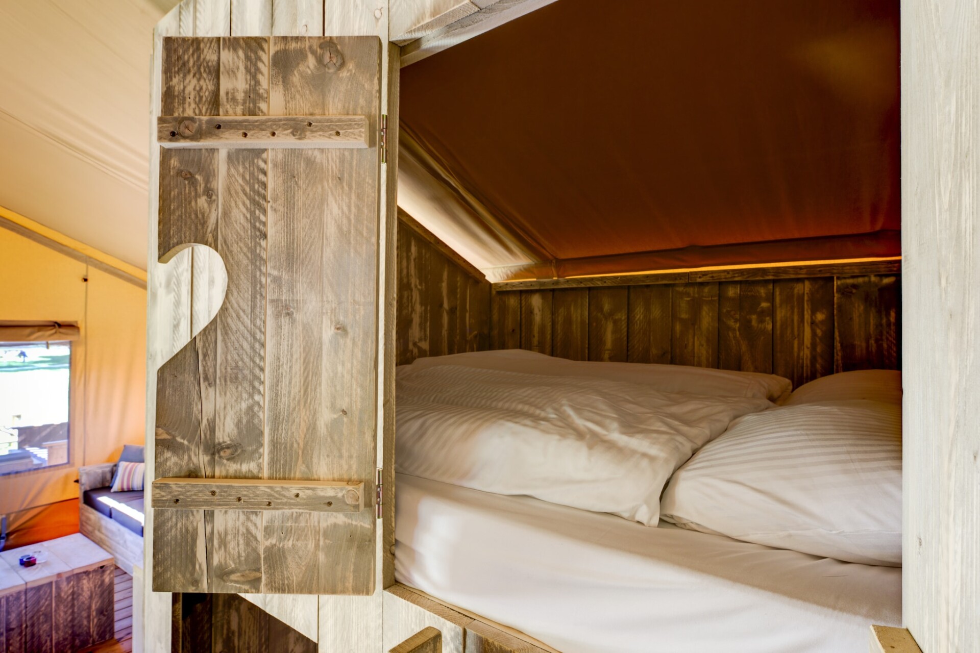 Stap in een glampingervaring waar de charme van de natuur naadloos samengaat met modern comfort. Deze ruime tentlodge, gelegen in een serene parkachtige omgeving in Dalfsen, biedt de perfecte balans tussen buitenleven en comfort binnen. Met een gezellige woonkamer, een volledig uitgeruste kitchenette, een pelletkachel voor koude avonden en luxe bedden – waaronder een unieke tweepersoons bedstee – is dit uw thuis weg van huis, alleen dan met een canvas dak en vogelgezang in de ochtend. Of u nu binnen voor de tv zit of buiten op de gemeubileerde veranda, elk moment hier nodigt uit tot ontspanning.