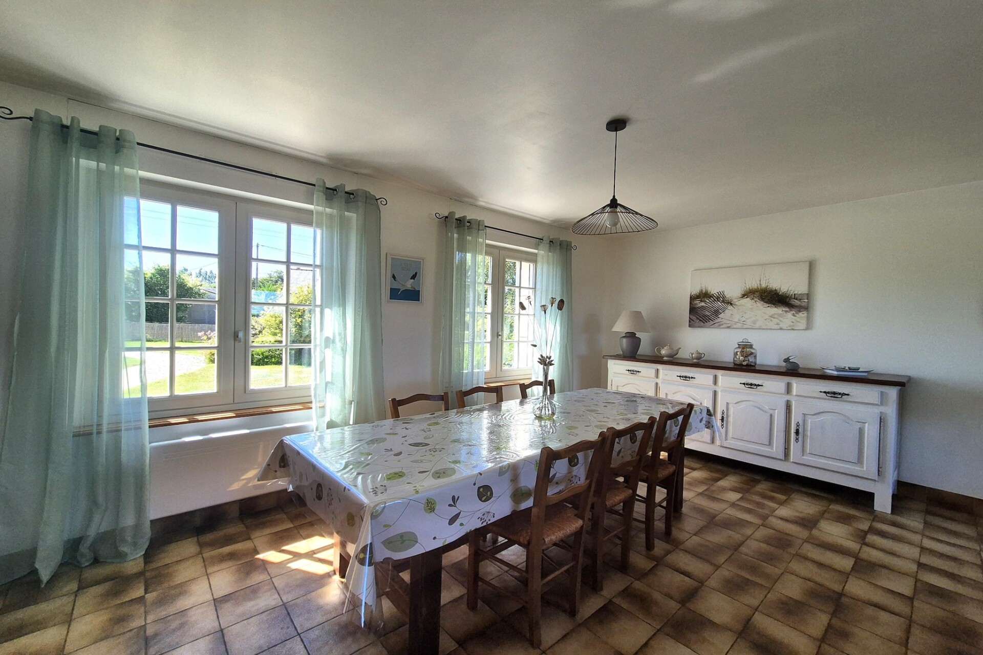 Een heerlijk vakantiehuis, omgeven door een enorme tuin van 1200 m², gelegen op slechts 1 km van de fijne zandstranden van Port Blanc. Deze rustige omgeving biedt een prachtig uitzicht op het omliggende landschap en vanaf de bovenste verdieping kunt u zelfs een glimp van de zee opvangen.