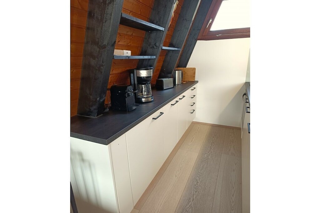 Het huis beschikt over een volledig uitgeruste keuken met een oven, magnetron, vaatwasser en koelkast.